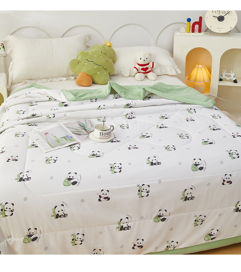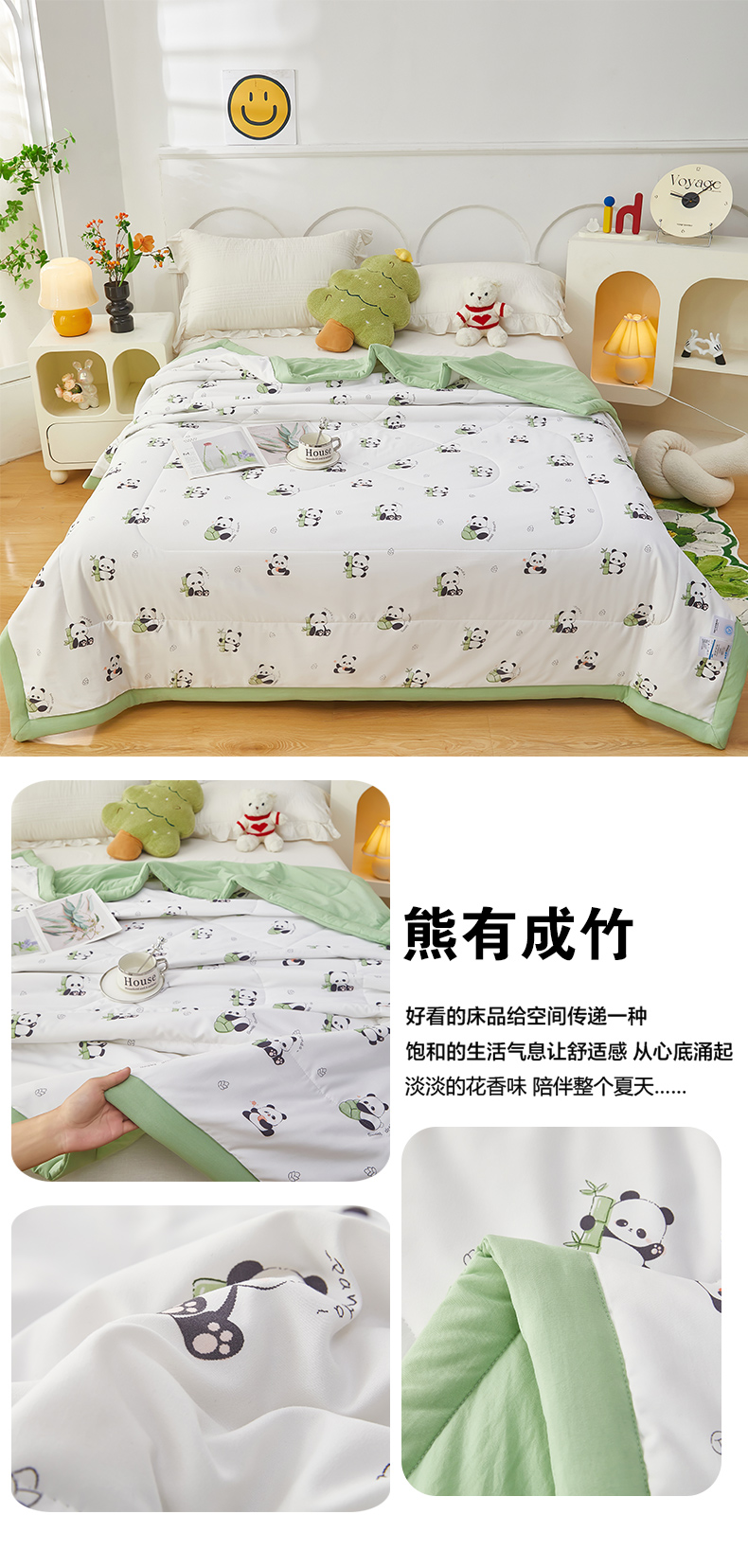 (总)中国龙家纺 2025新款双面可用兔毛绒豆豆被被子被芯,熊猫点点-绿,熊猫点点-咖