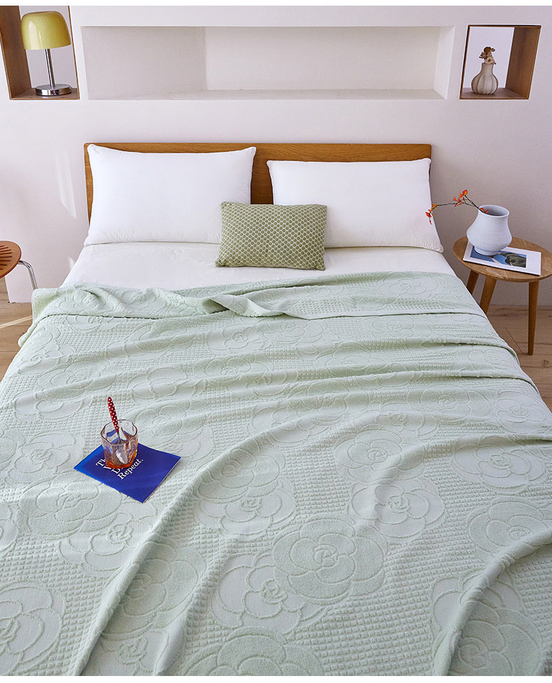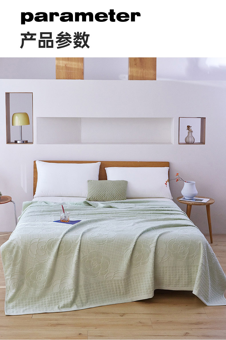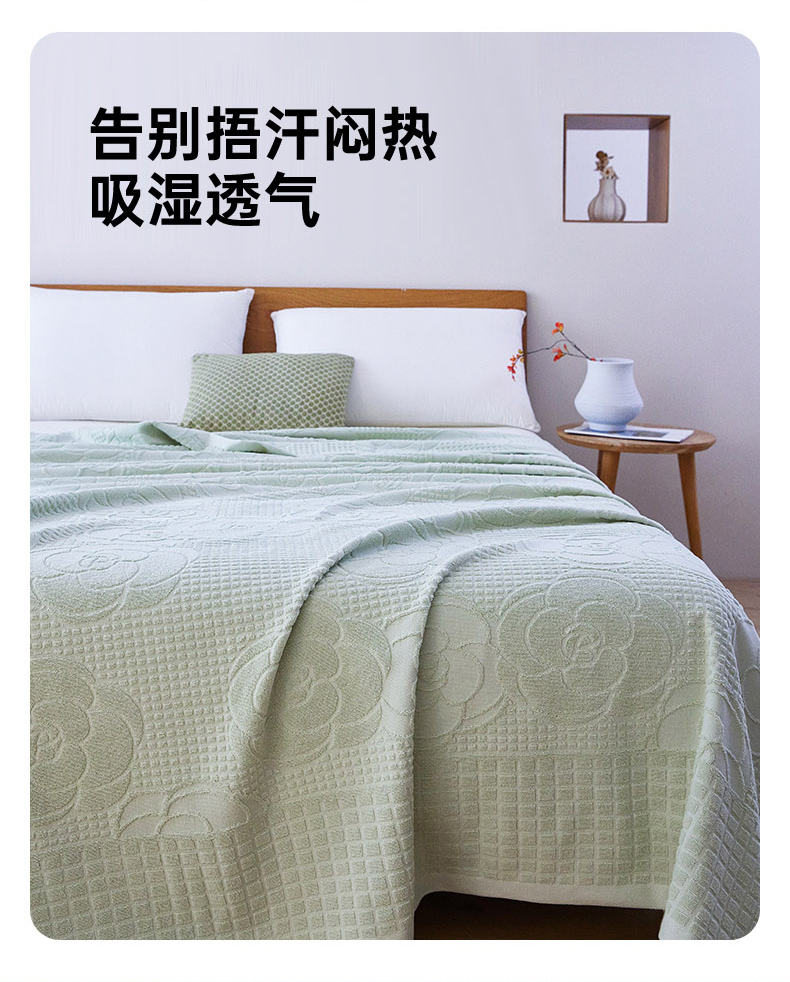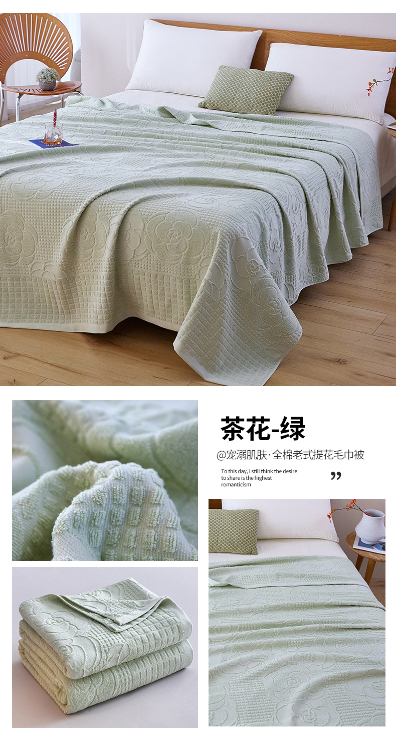 商品名称:爱港家纺 2025新款上海专版老式怀旧全棉A类纱布毛巾被 茶花-绿