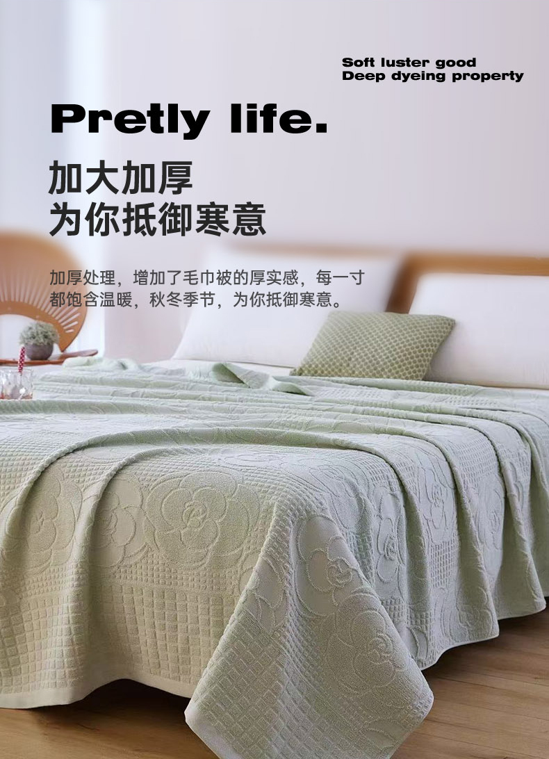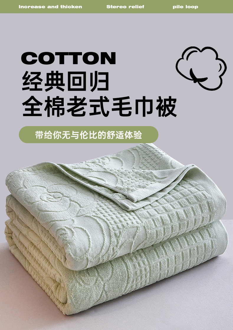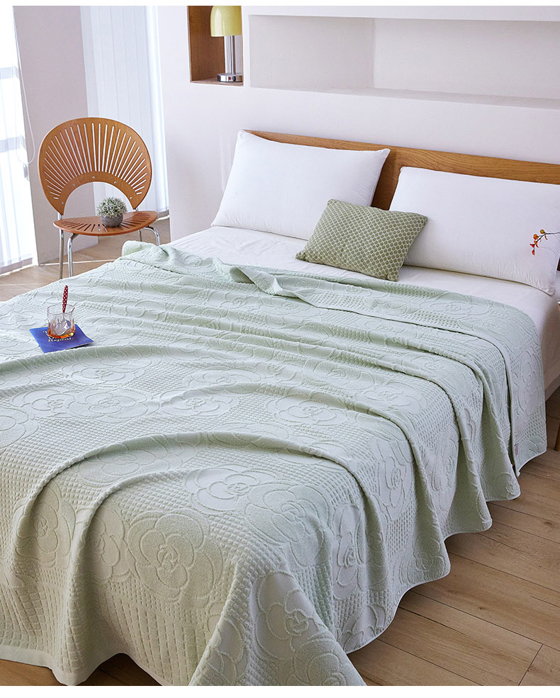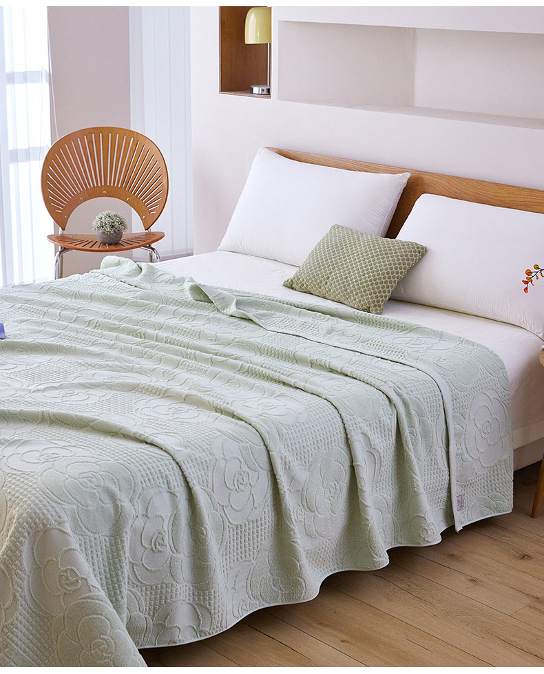 商品名称:爱港家纺 2025新款上海专版老式怀旧全棉A类纱布毛巾被 茶花-绿