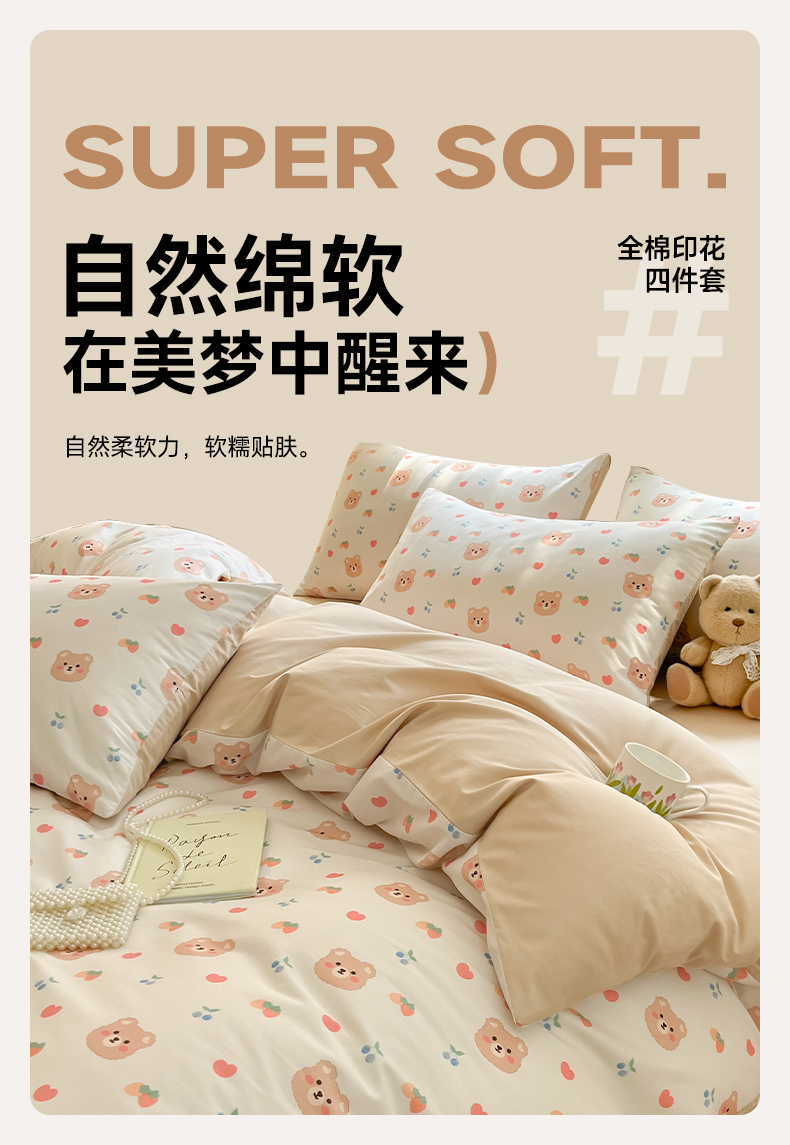 商品名称:仔仔熊 2025新款全棉印花四件套 爱心小熊