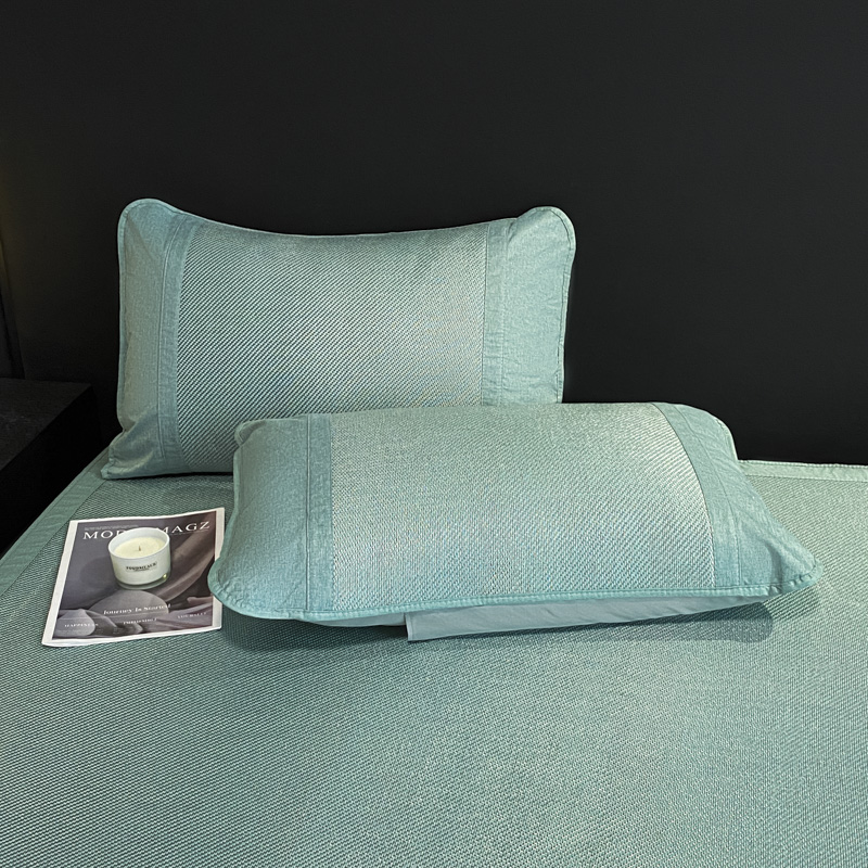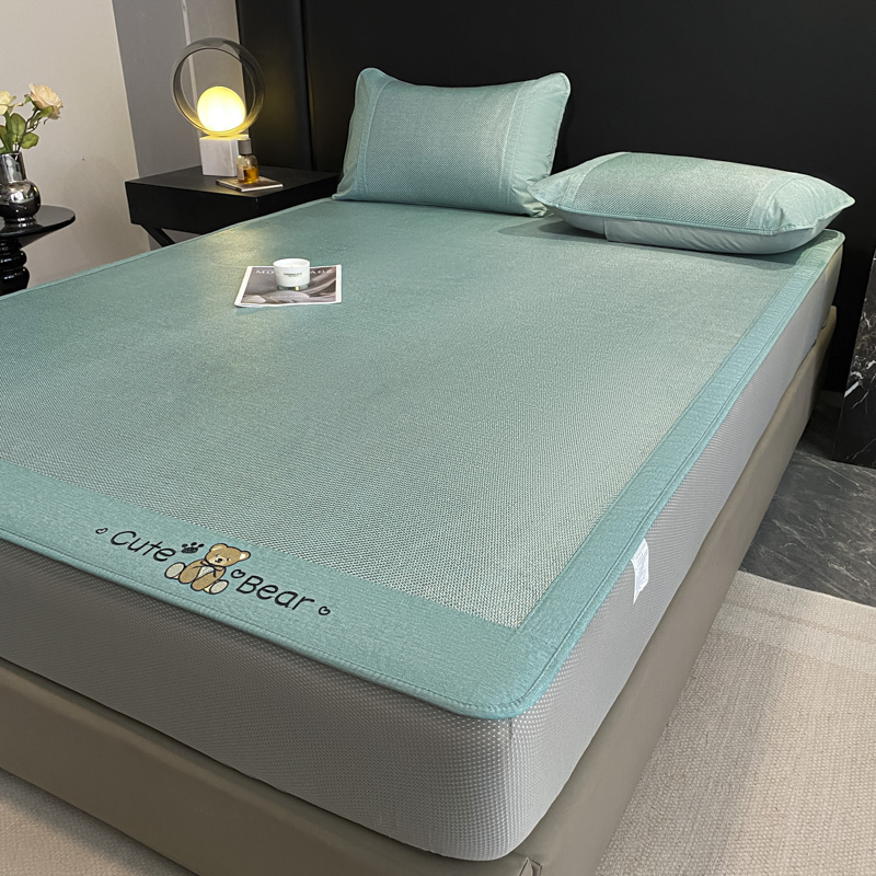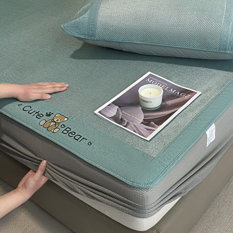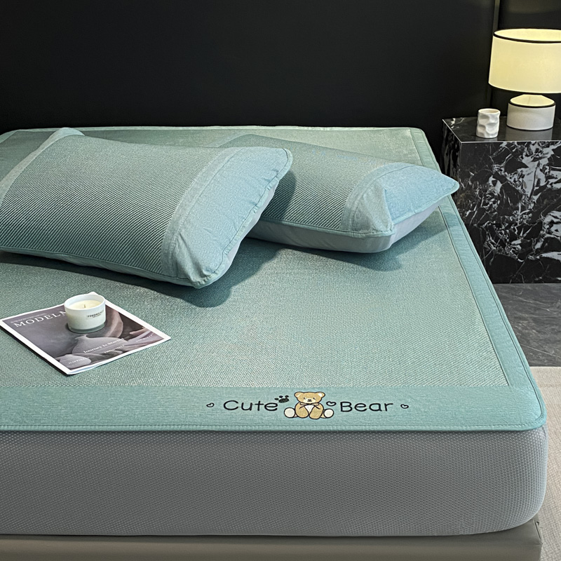 商品名称:莱米家纺 2025新款加厚凉感绣花冰藤席 幸运熊—湖绿-床笠