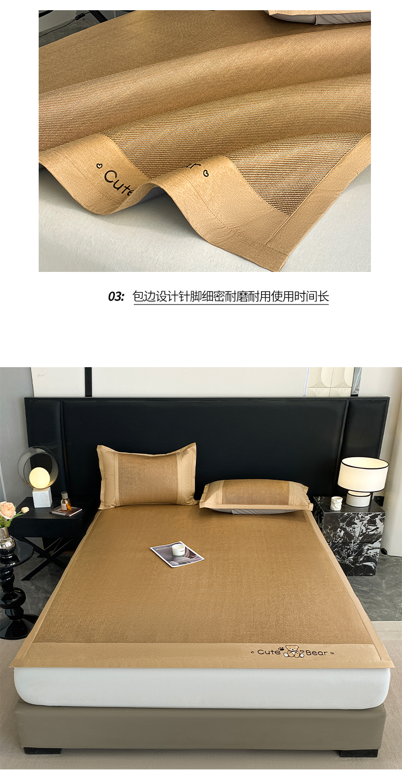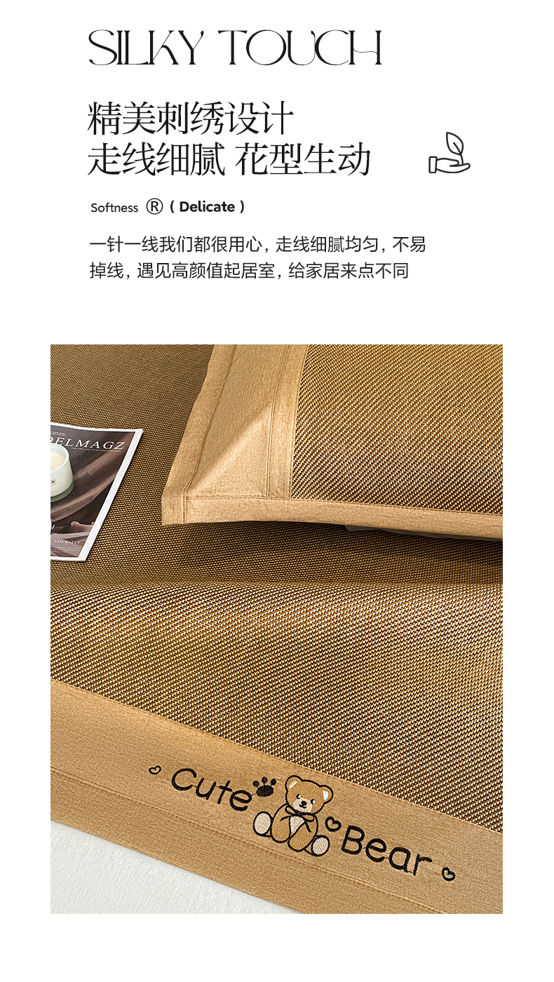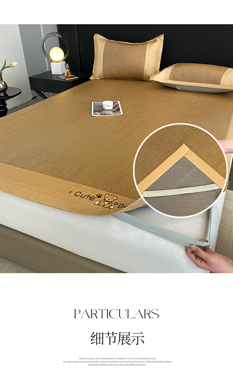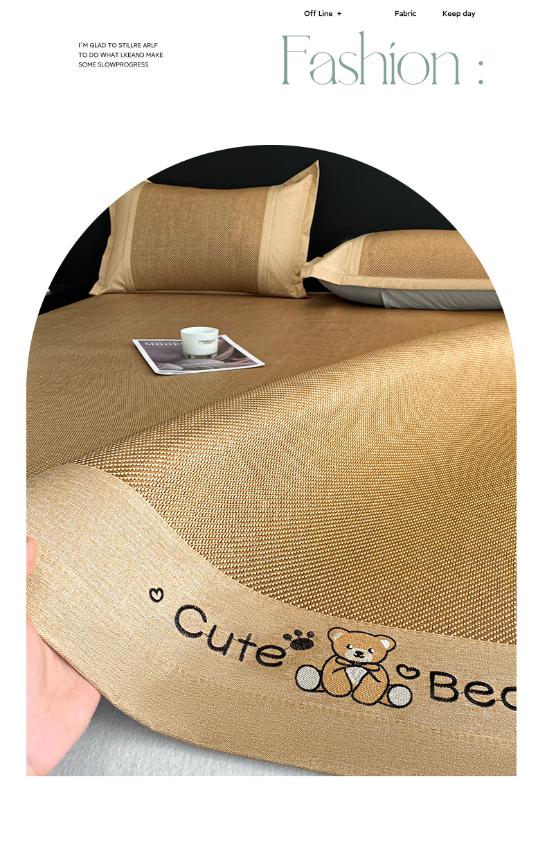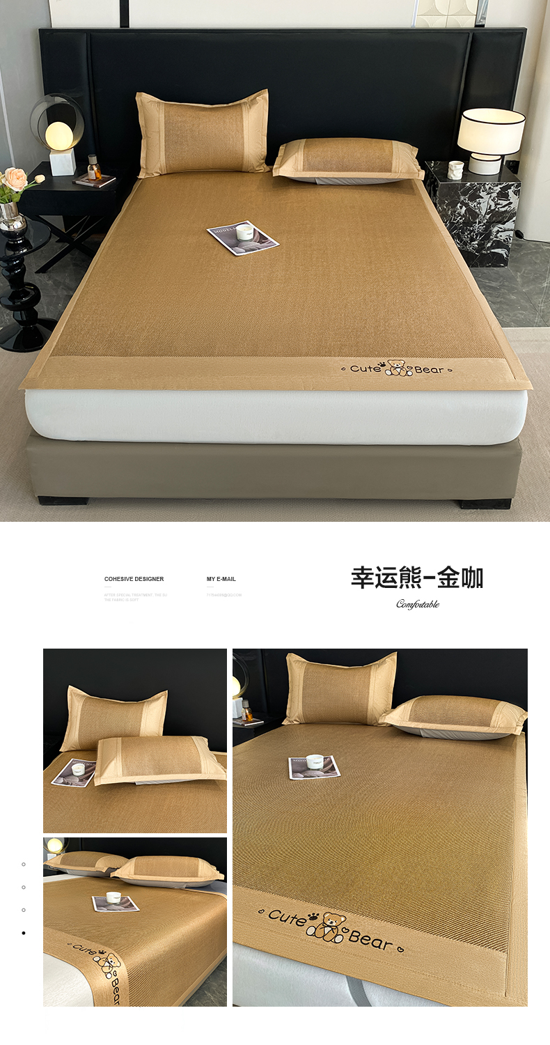 商品名称:莱米家纺 2025新款加厚凉感绣花冰藤席 幸运熊—金咖-凉席