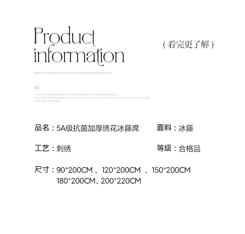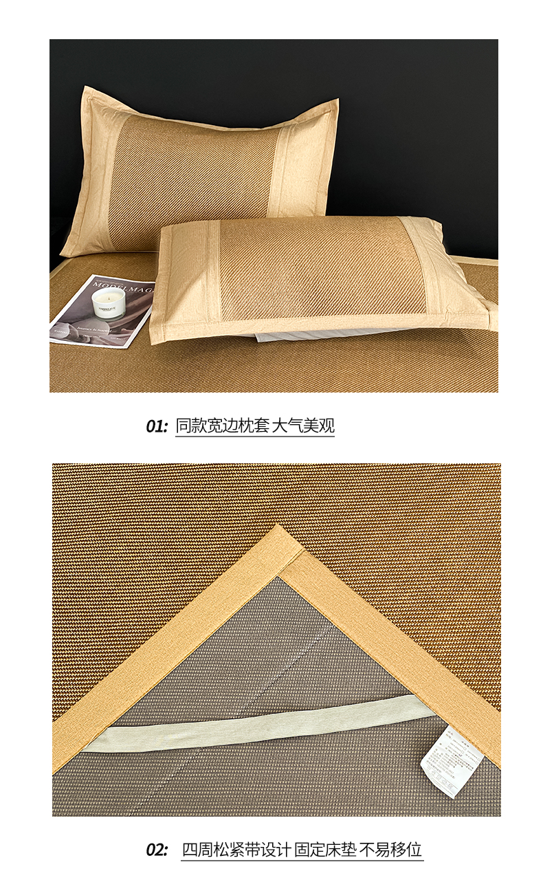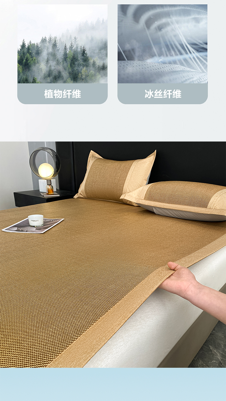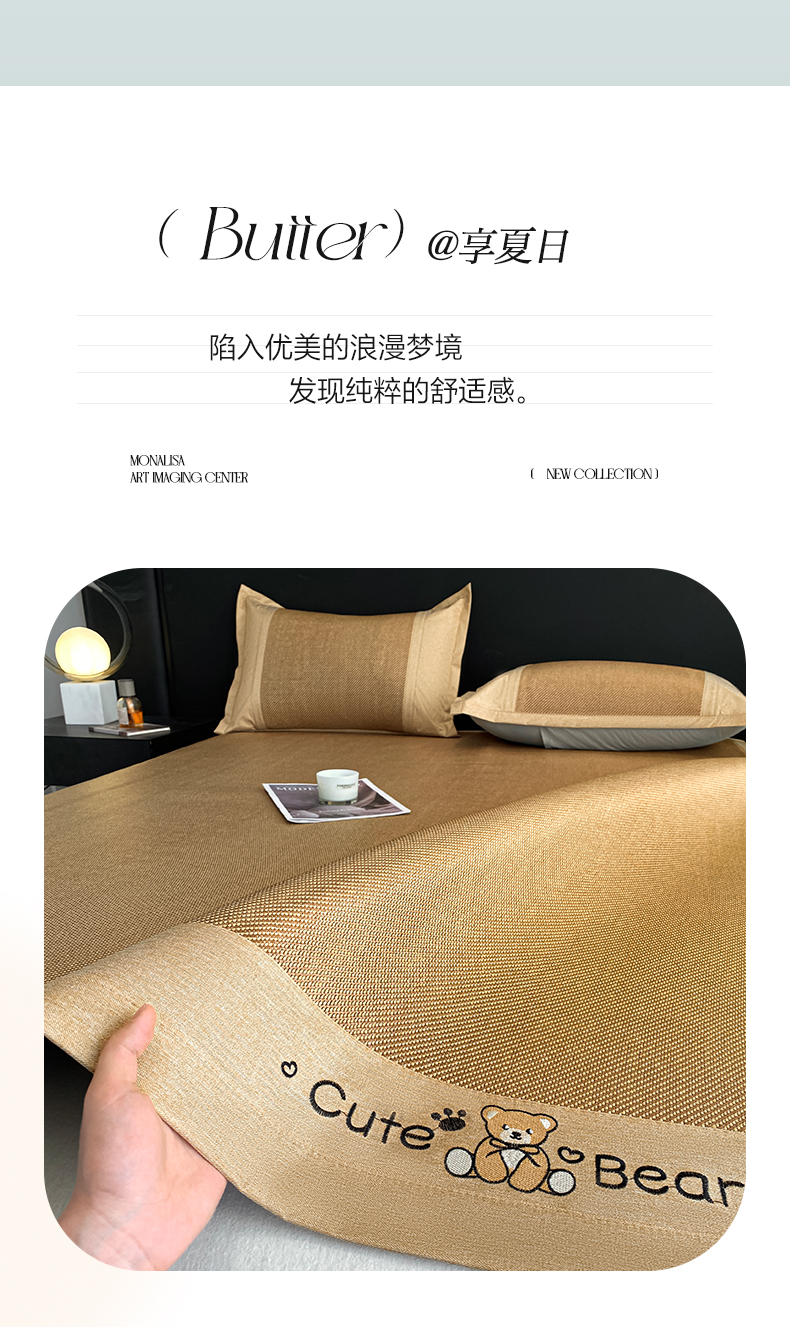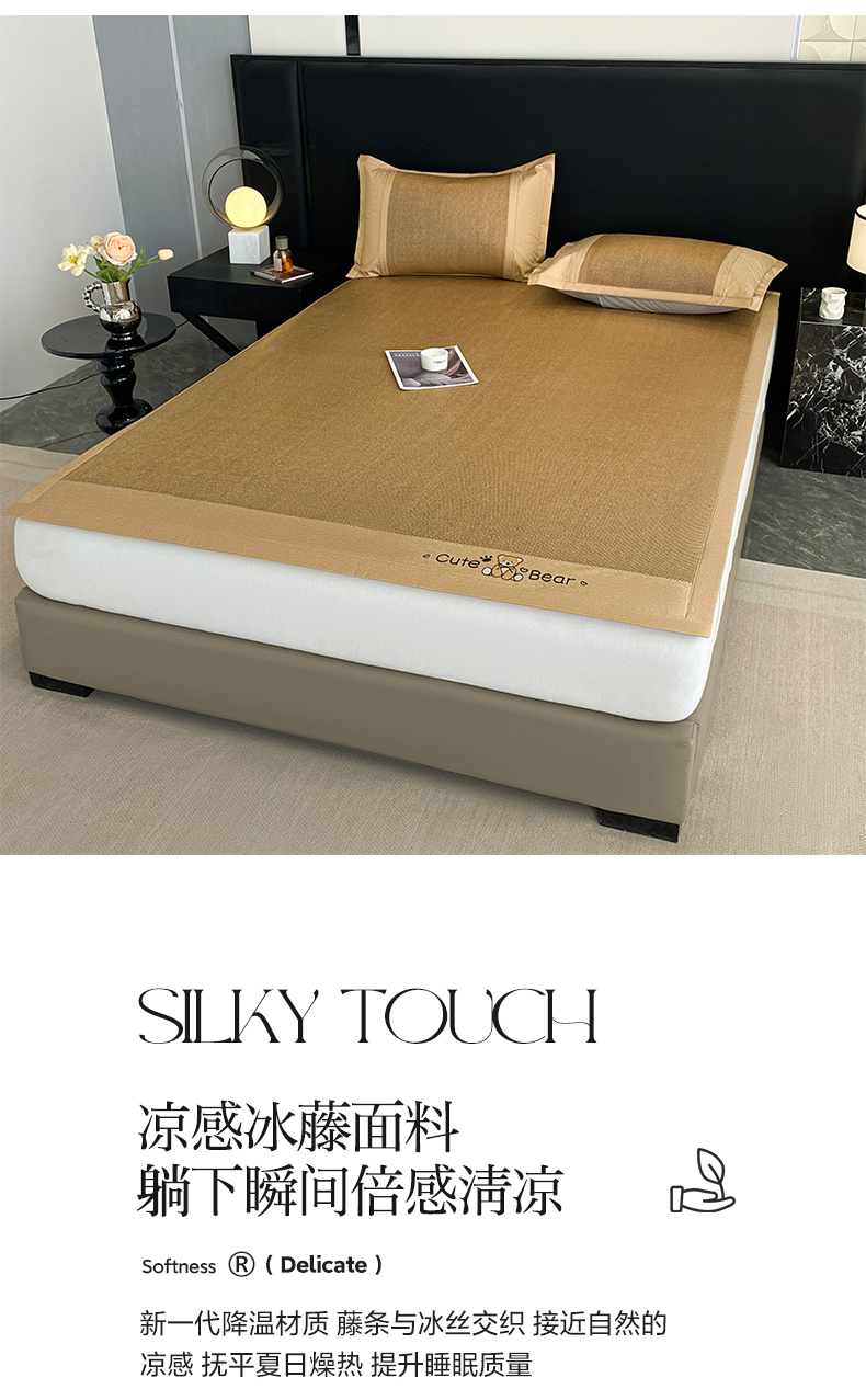 商品名称:莱米家纺 2025新款加厚凉感绣花冰藤席 幸运熊—金咖-凉席