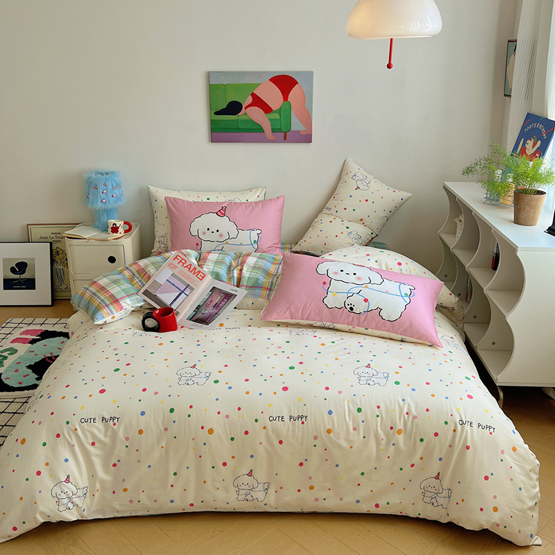 商品名称:桃喜 2025新款13372经典混搭全棉卡通四件套 碎花狗狗