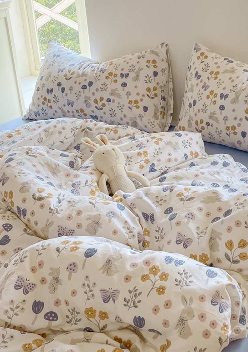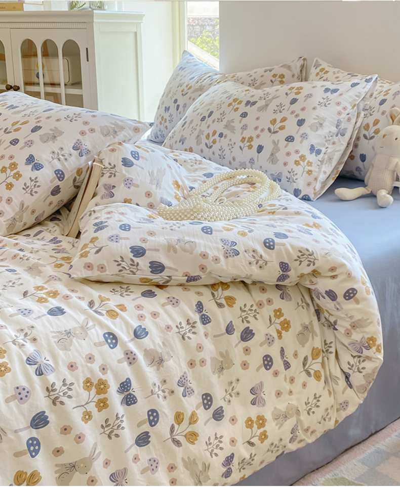 当前位置: 91家纺网 > 商品网购 > 床品套件 > 四件套 > 全棉普通四件套 > 【提供买家秀】2025直播云感皱皱棉四件套水洗棉简约风小碎花被套床笠三件套-平铺图 童话森林