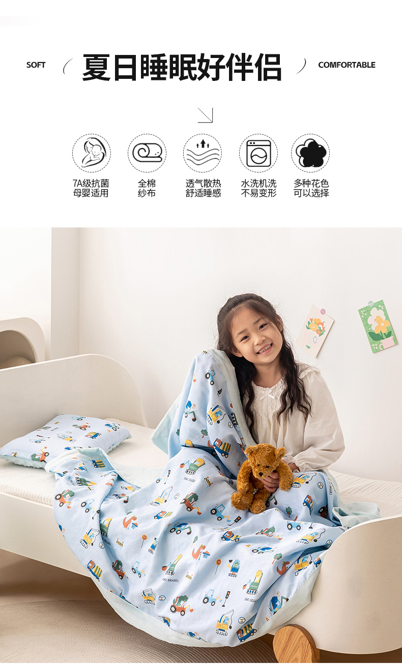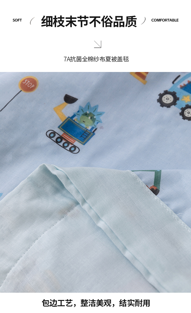 商品名称:嗨生活 2025年 7A抗菌全棉双层纱夏被 纱布夏被盖毯 儿童夏被 幼儿园夏被 挖机恐龙