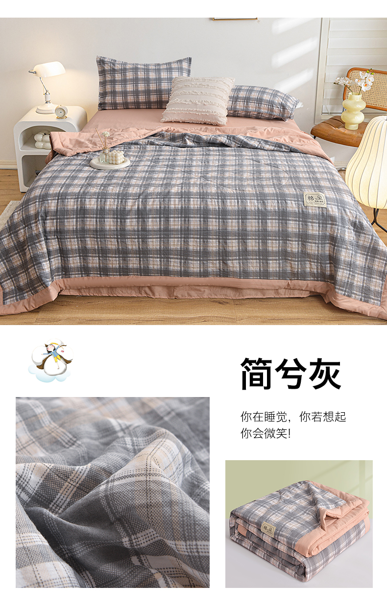 商品名称:小鱼儿家纺 2025新款水洗夏凉被 简兮灰