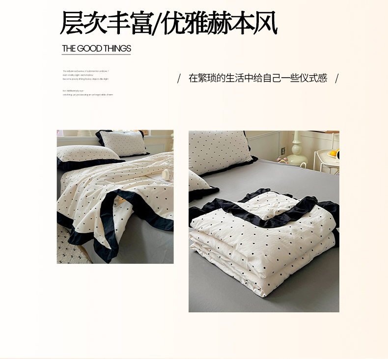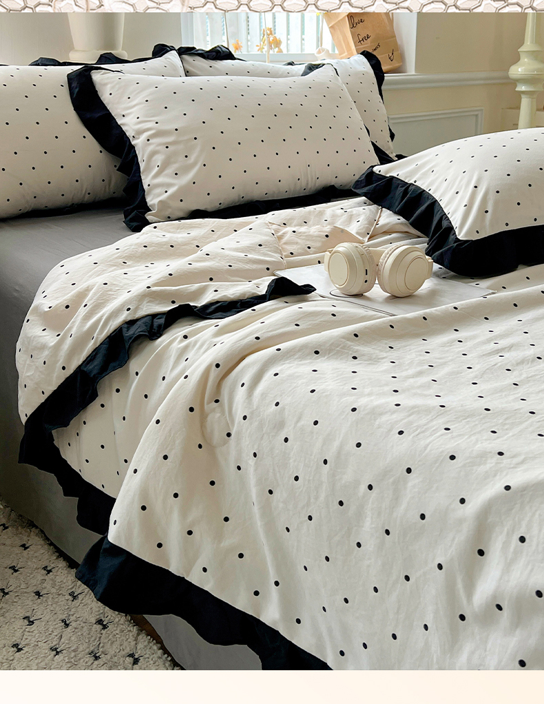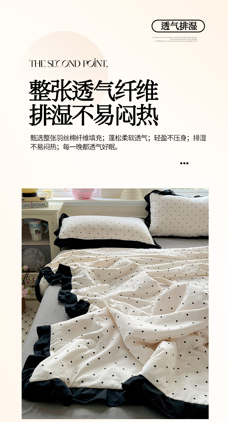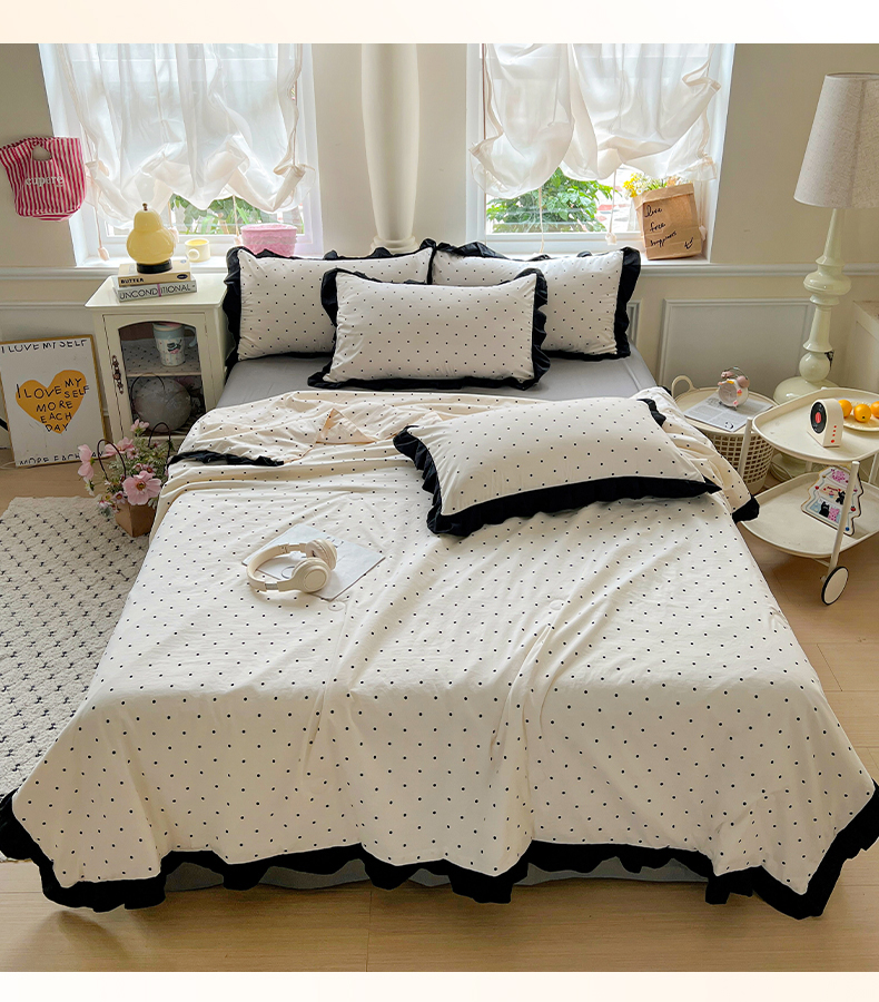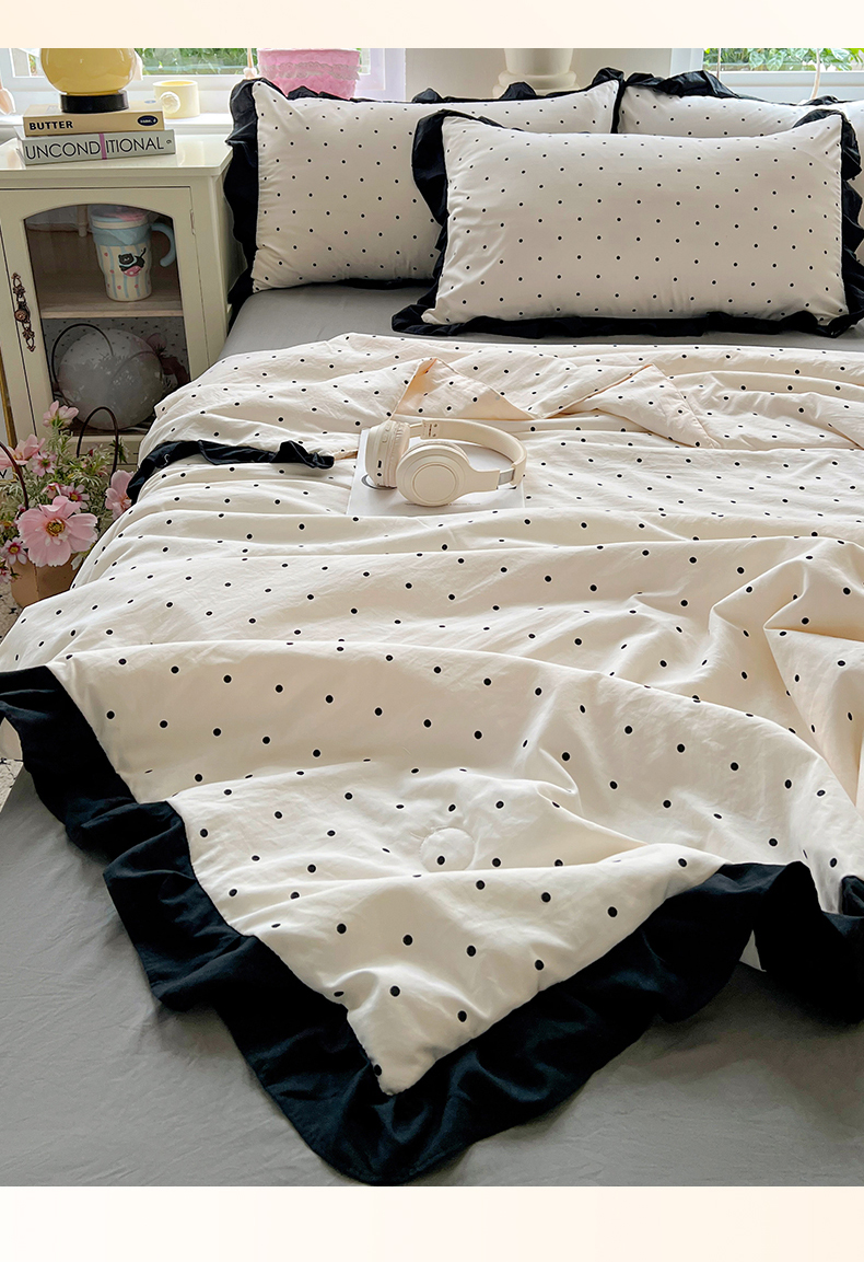 当前位置: 91家纺网 > 商品网购 > 床品套件 > 四件套 > 全棉普通四件套 > 鑫利来家纺 2025爆款法式赫本风水洗棉韩版荷叶花边云朵棉夏被夏凉被空调被四件套直播爆款 波点