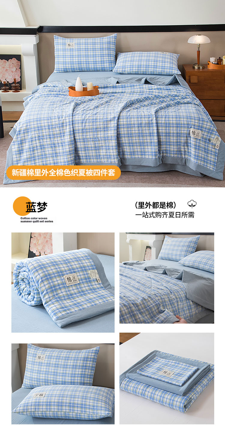 • 91家纺网 家纺一手货源 找家纺 三俏家纺 2025新款新疆棉花被夏被100%里外全棉棉花夏被无印风全棉色织水洗棉夏凉被空调被春秋被单人可机洗-风格二 若梦