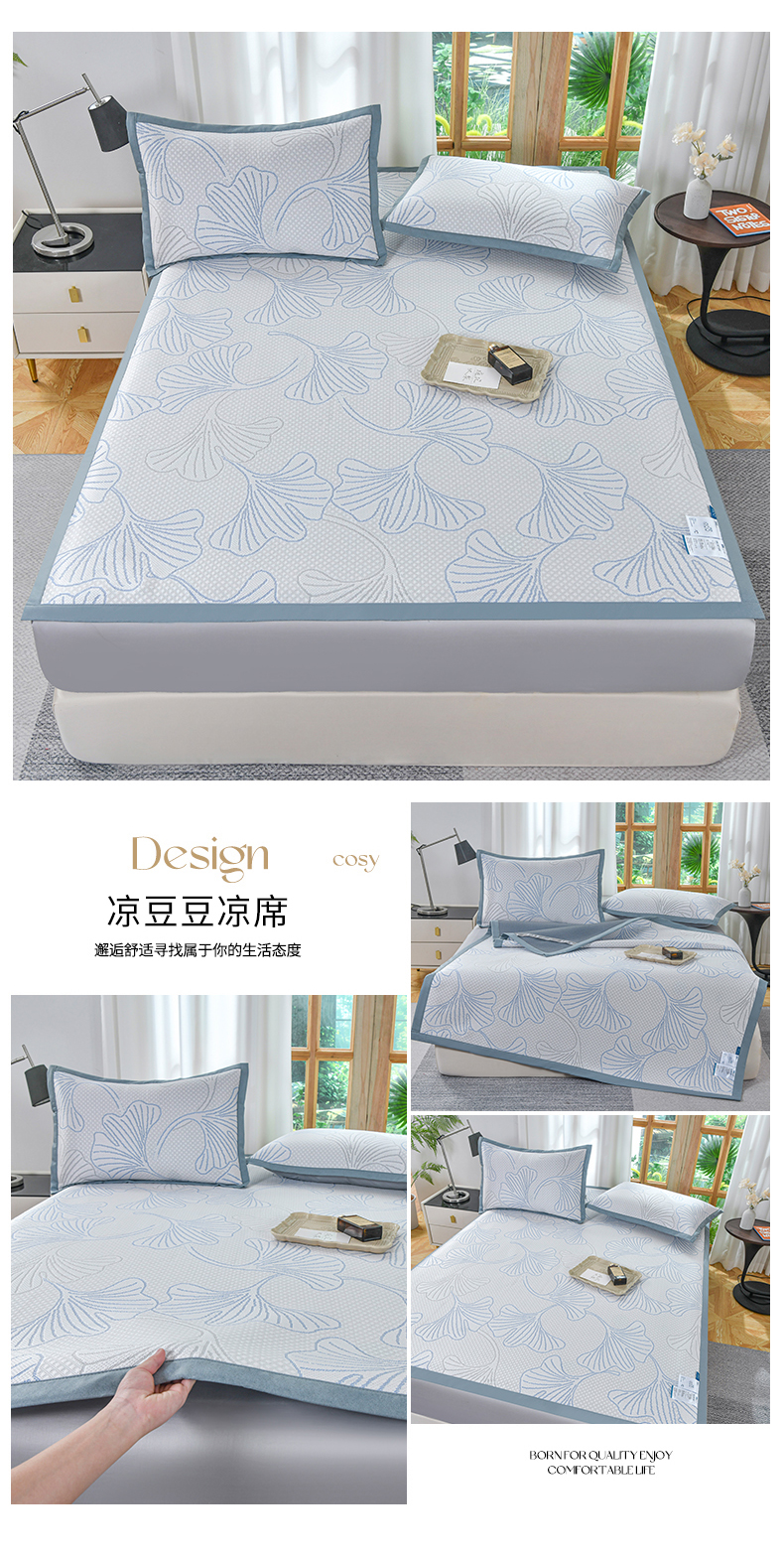 商品名称:慕克斯家纺 2025新款高端加密加厚凉豆豆软席家用凉席子空调席 蓝色