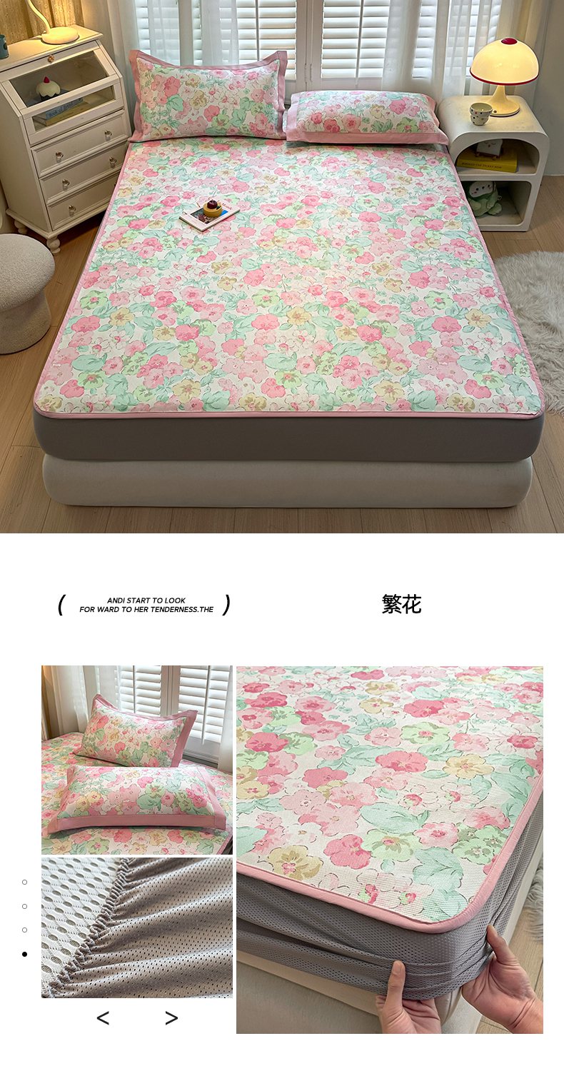 (总)迪乐妮 2025新款真冰藤印花床笠款凉席