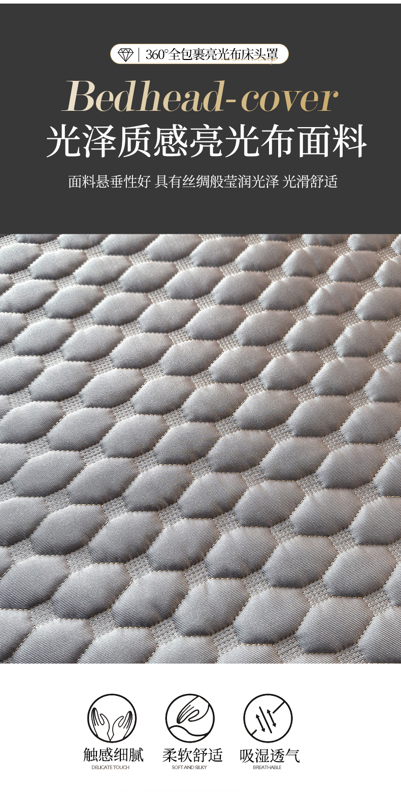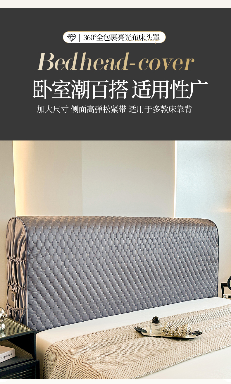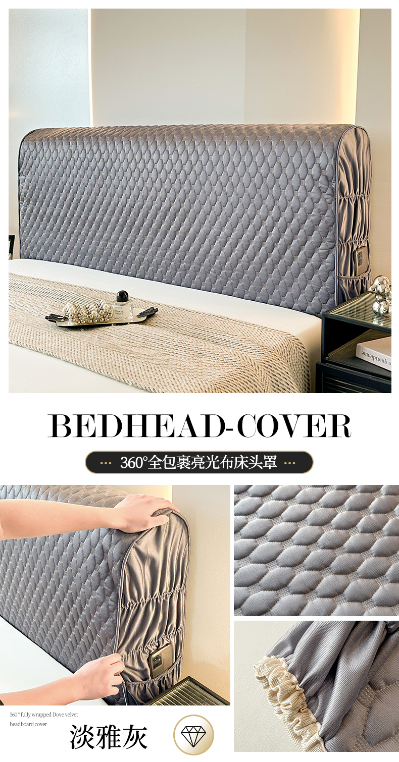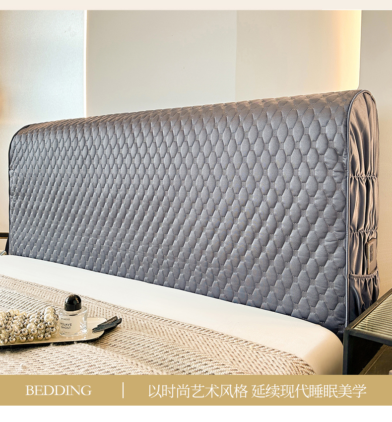 • 91家纺网 家纺一手货源 找家纺 情恒家纺 2025夏季款亮光布加厚双面用床头罩 淡雅灰