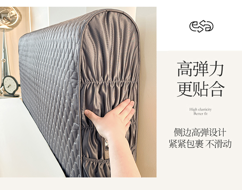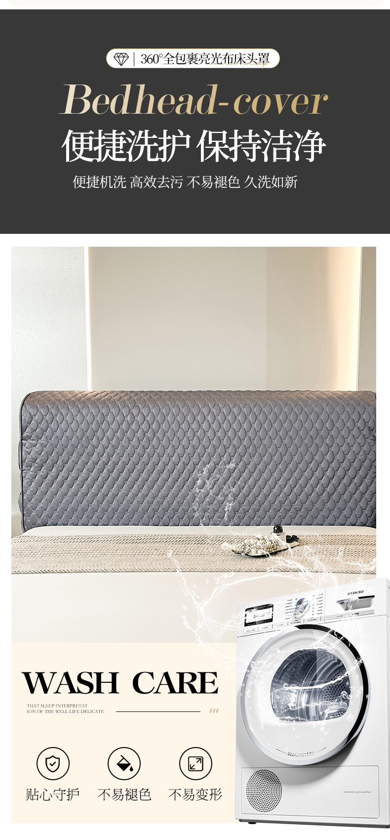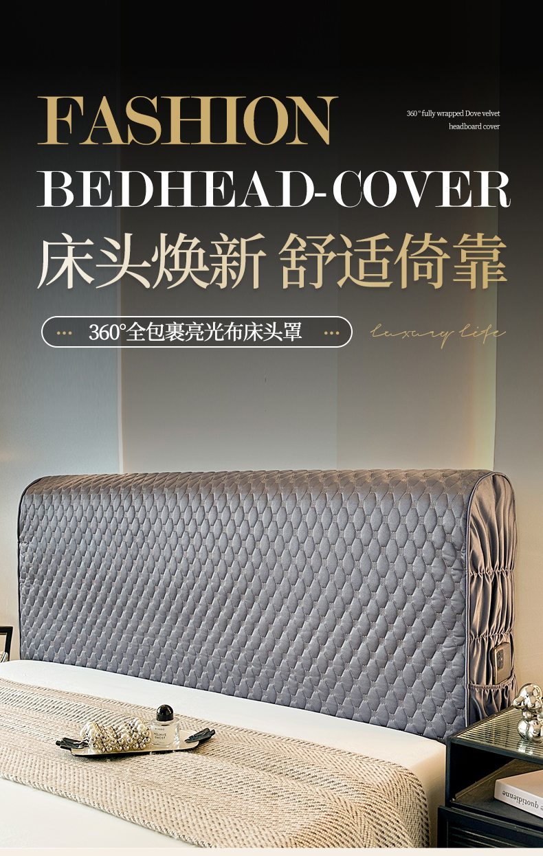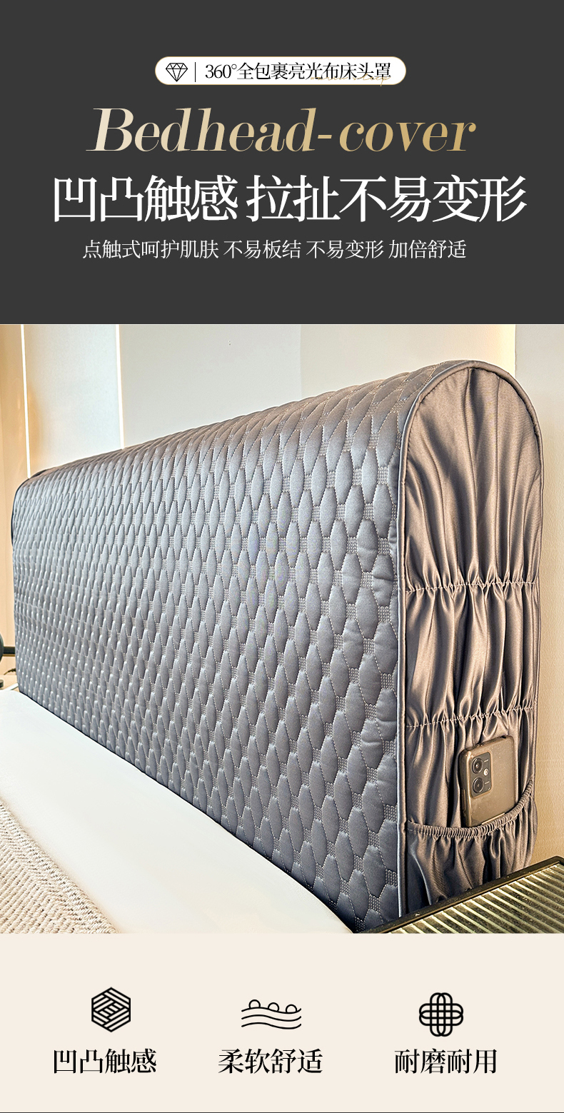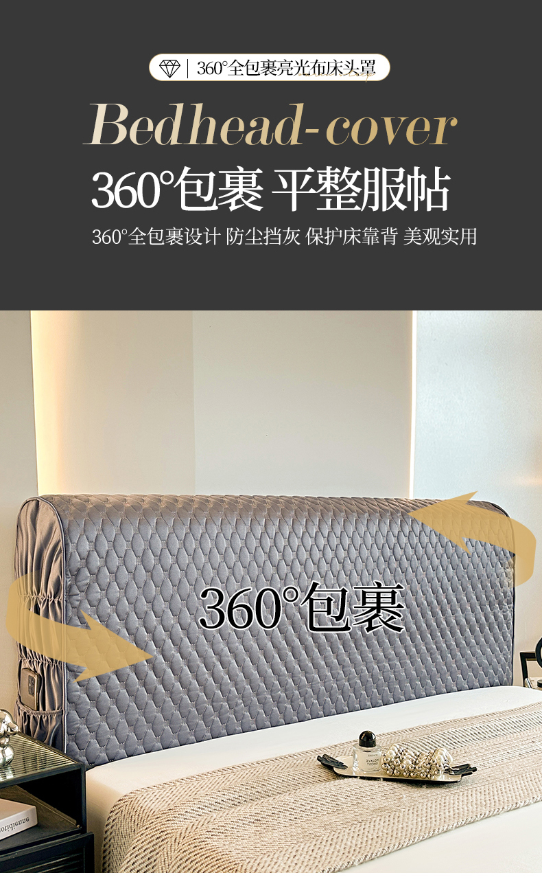 • 91家纺网 家纺一手货源 找家纺 情恒家纺 2025夏季款亮光布加厚双面用床头罩 淡雅灰
