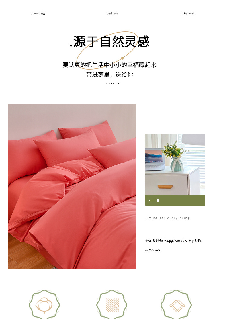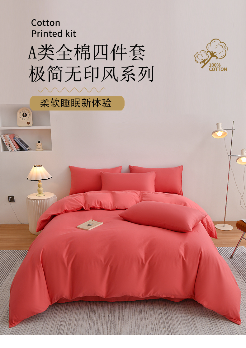 当前位置: 91家纺网 > 商品网购 > 床品套件 > 四件套 > 全棉普通四件套 > 宇彬家纺 2025直播新款13374全棉母婴级简约轻奢小清新纯色四件套斜纹贡缎新疆长绒极简无印风系列 极简-宝石红