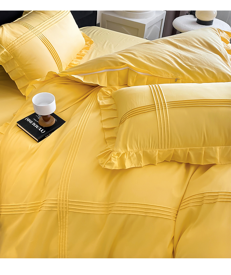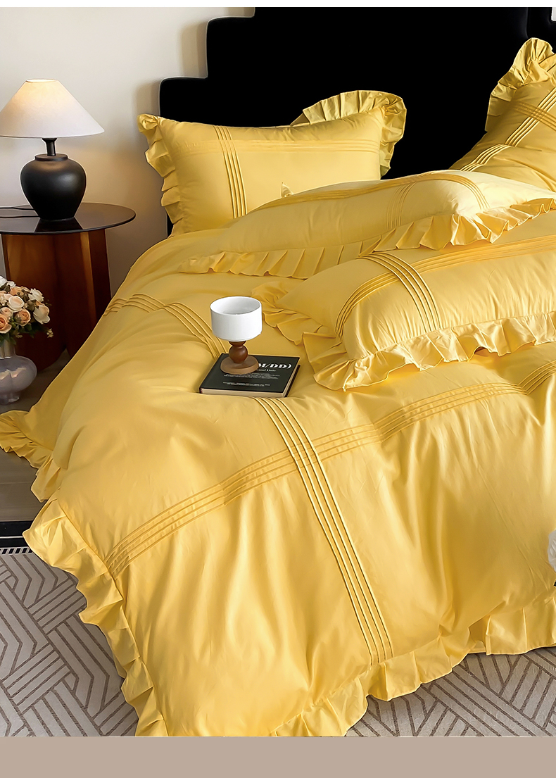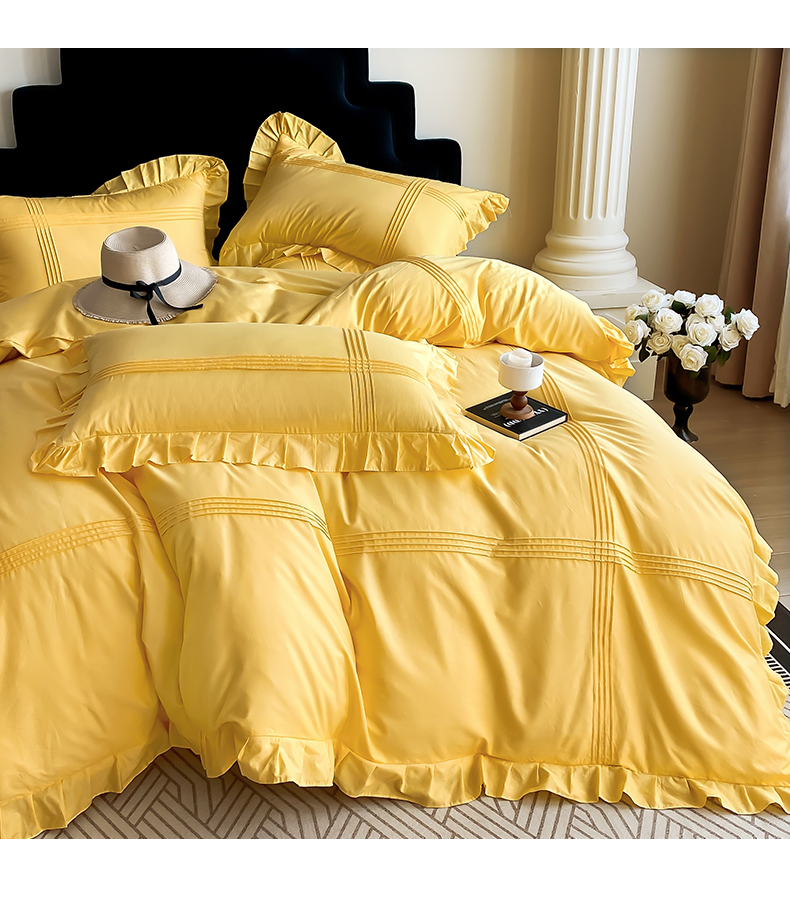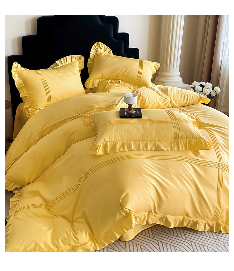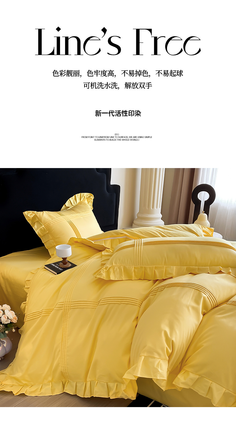 当前位置: 91家纺网 > 商品网购 > 床品套件 > 四件套 > 全棉普通四件套 > 花香四季家纺 2025新款全棉13376公主风纯棉法式手工立体线条四件套 姜黄