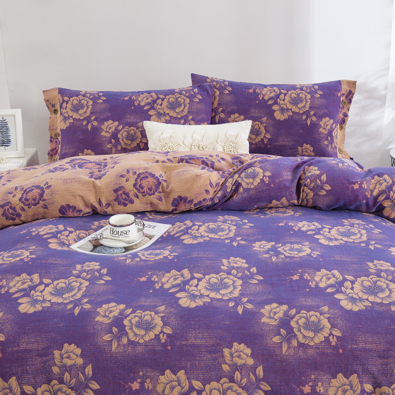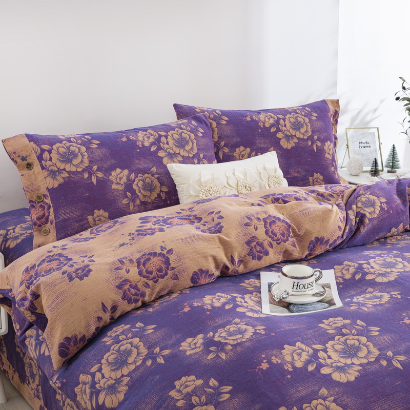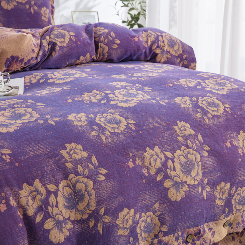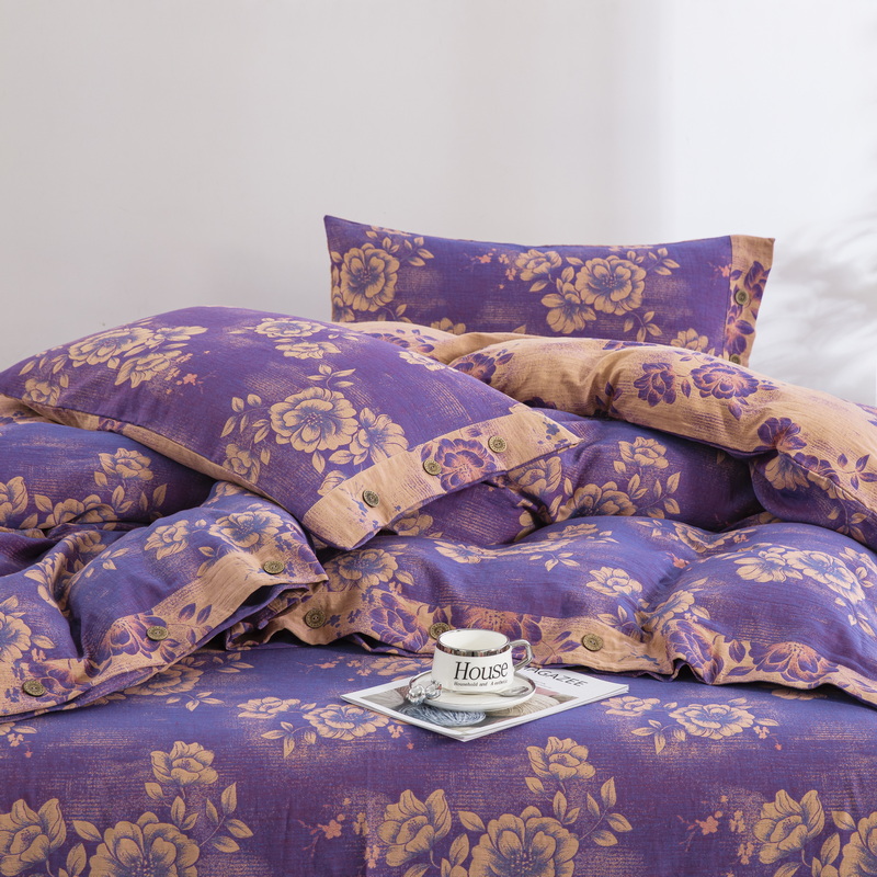 商品名称:2025新款全棉色织双层纱纽扣款四件套 云纱-紫罗兰