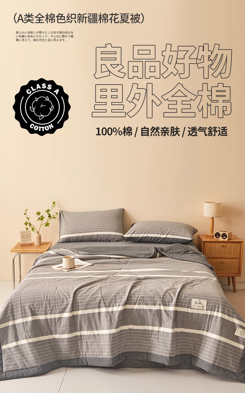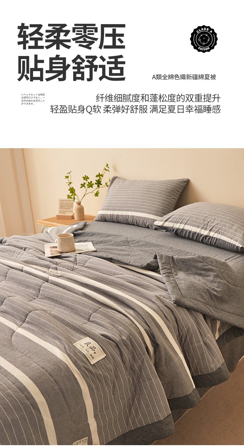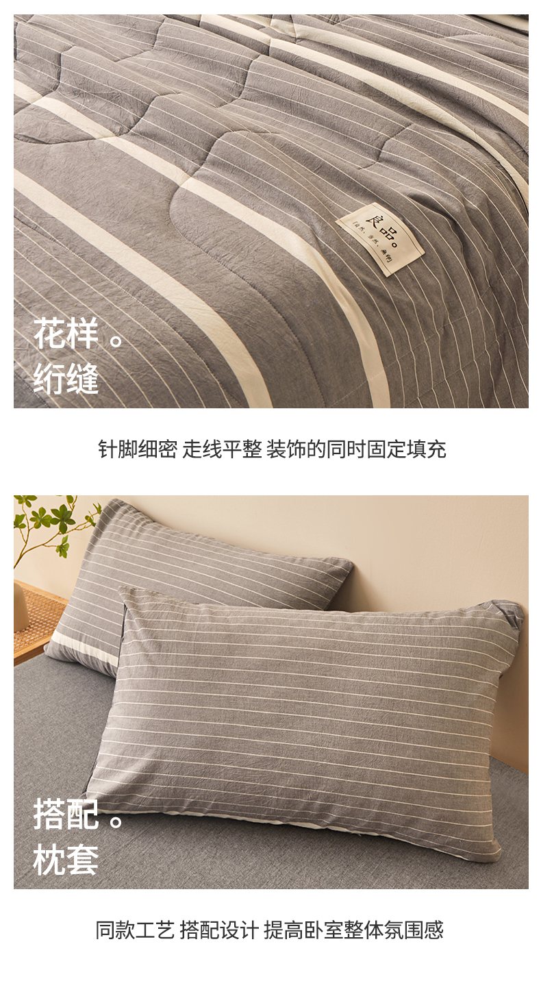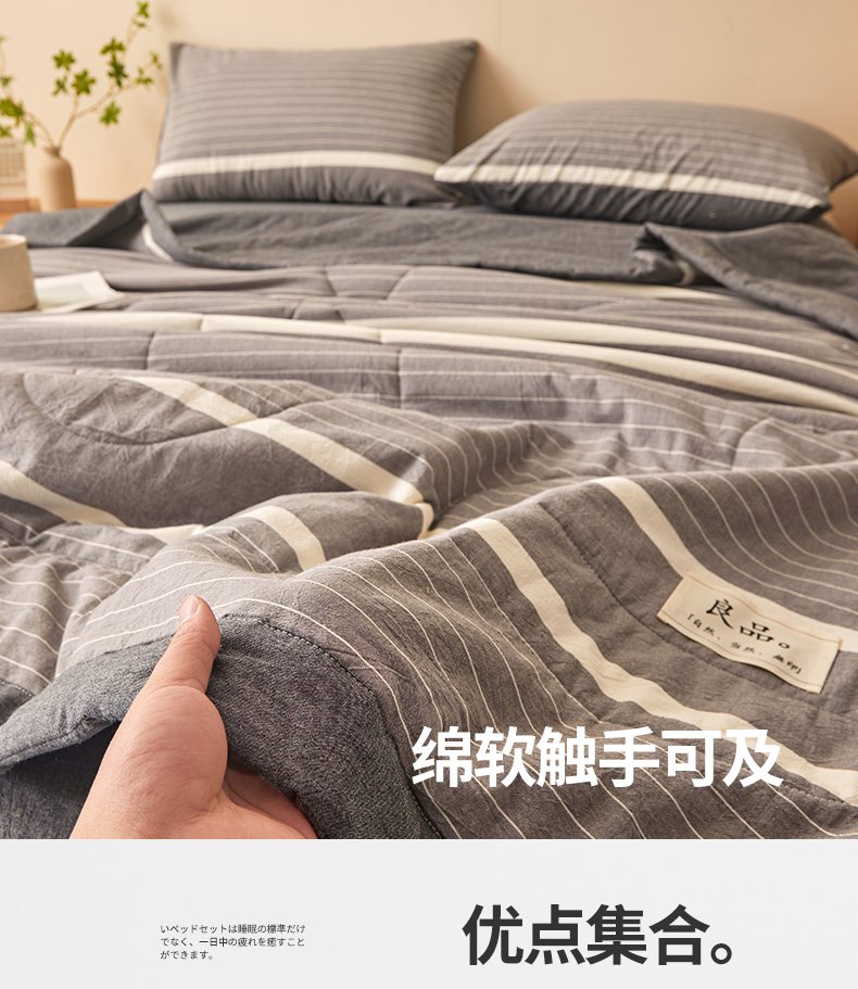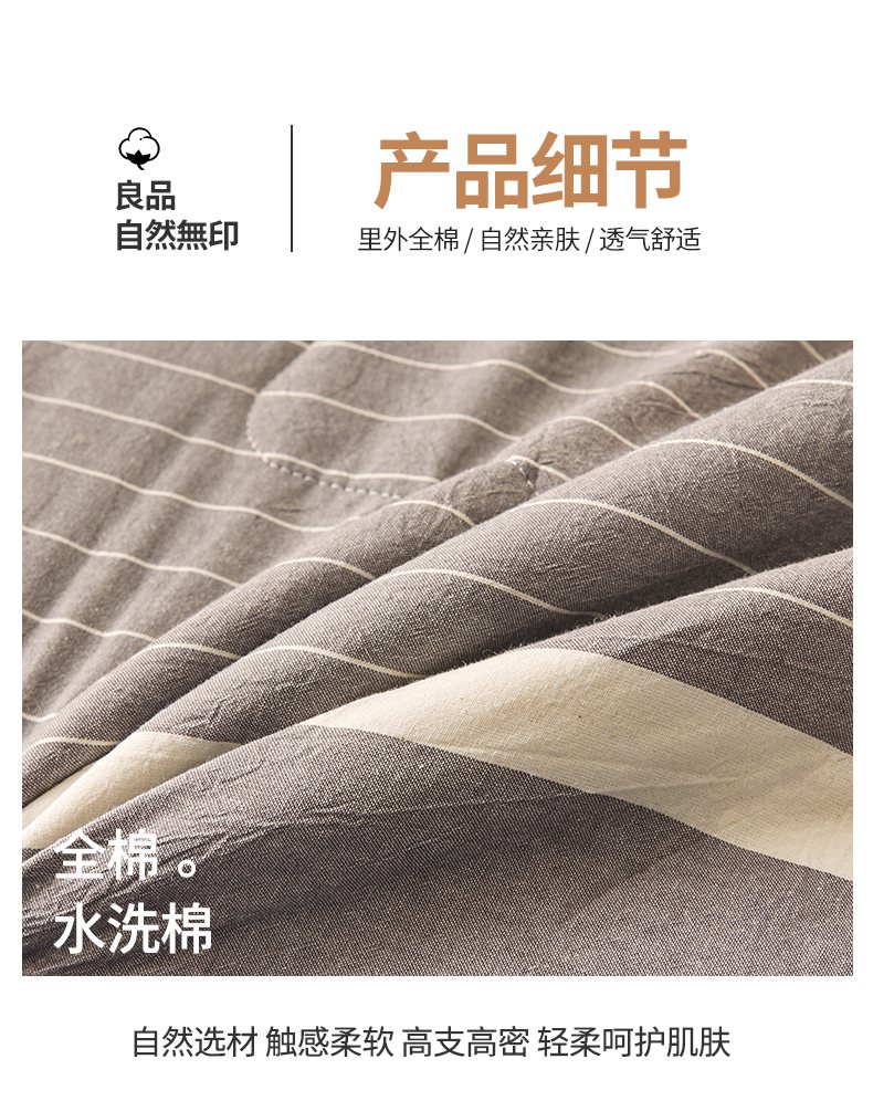 • 91家纺网 家纺一手货源 找家纺 秋泽家纺 2025新款全棉色织水洗棉棉花夏被夏凉被空调被 灰细条