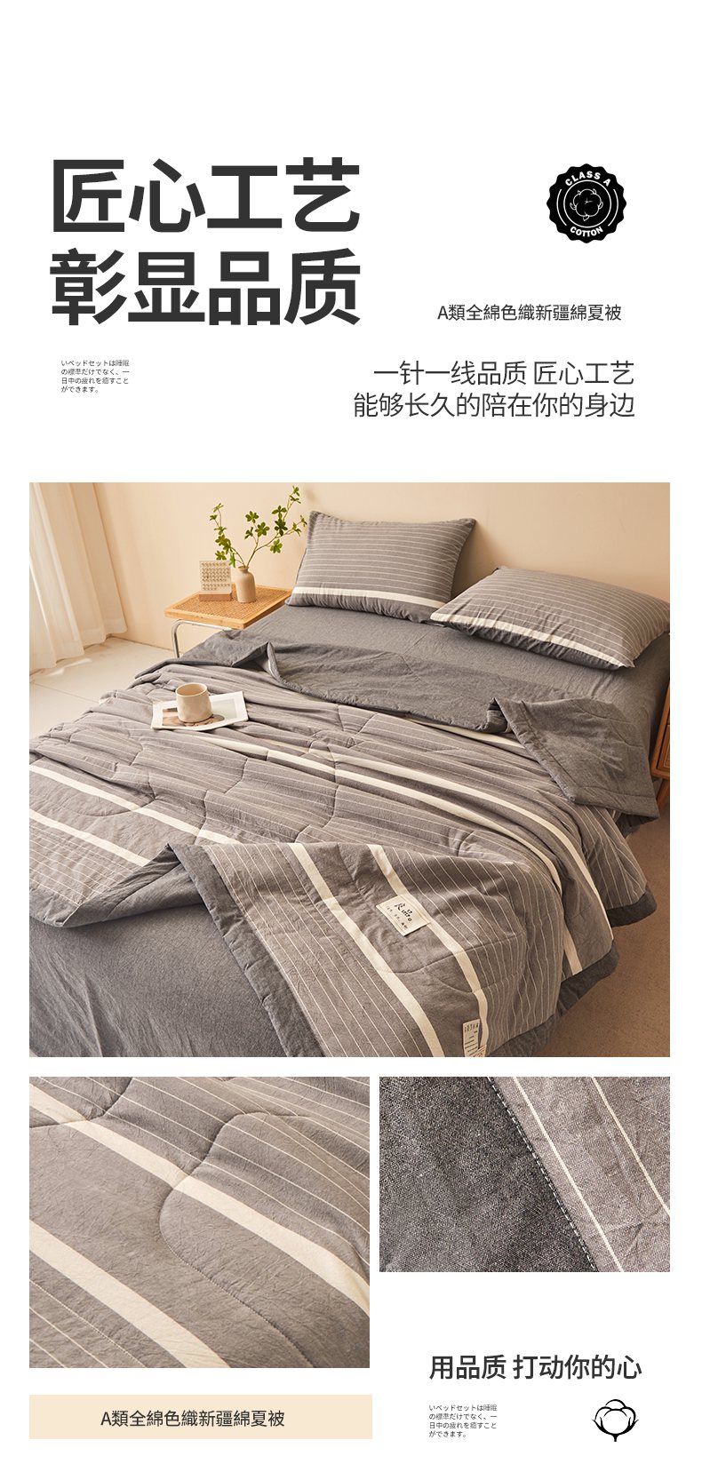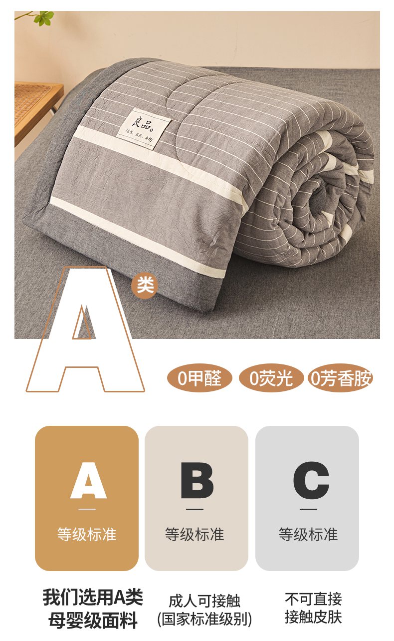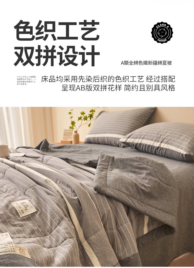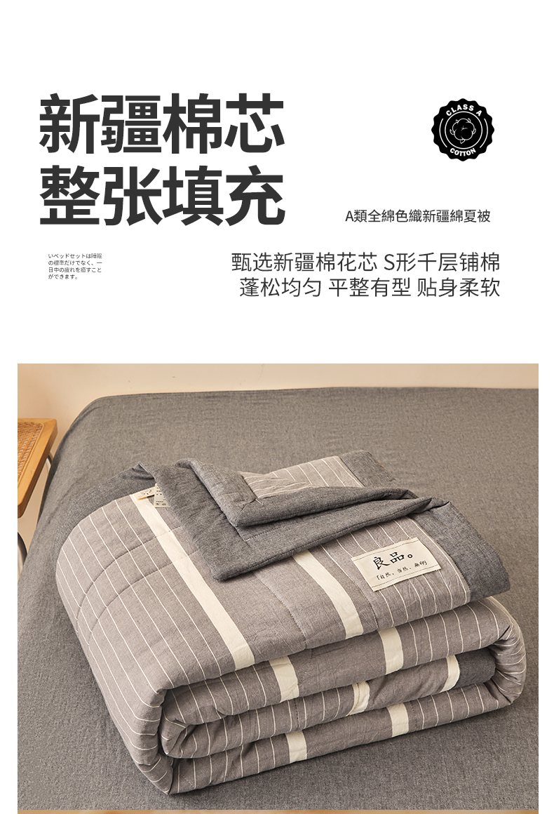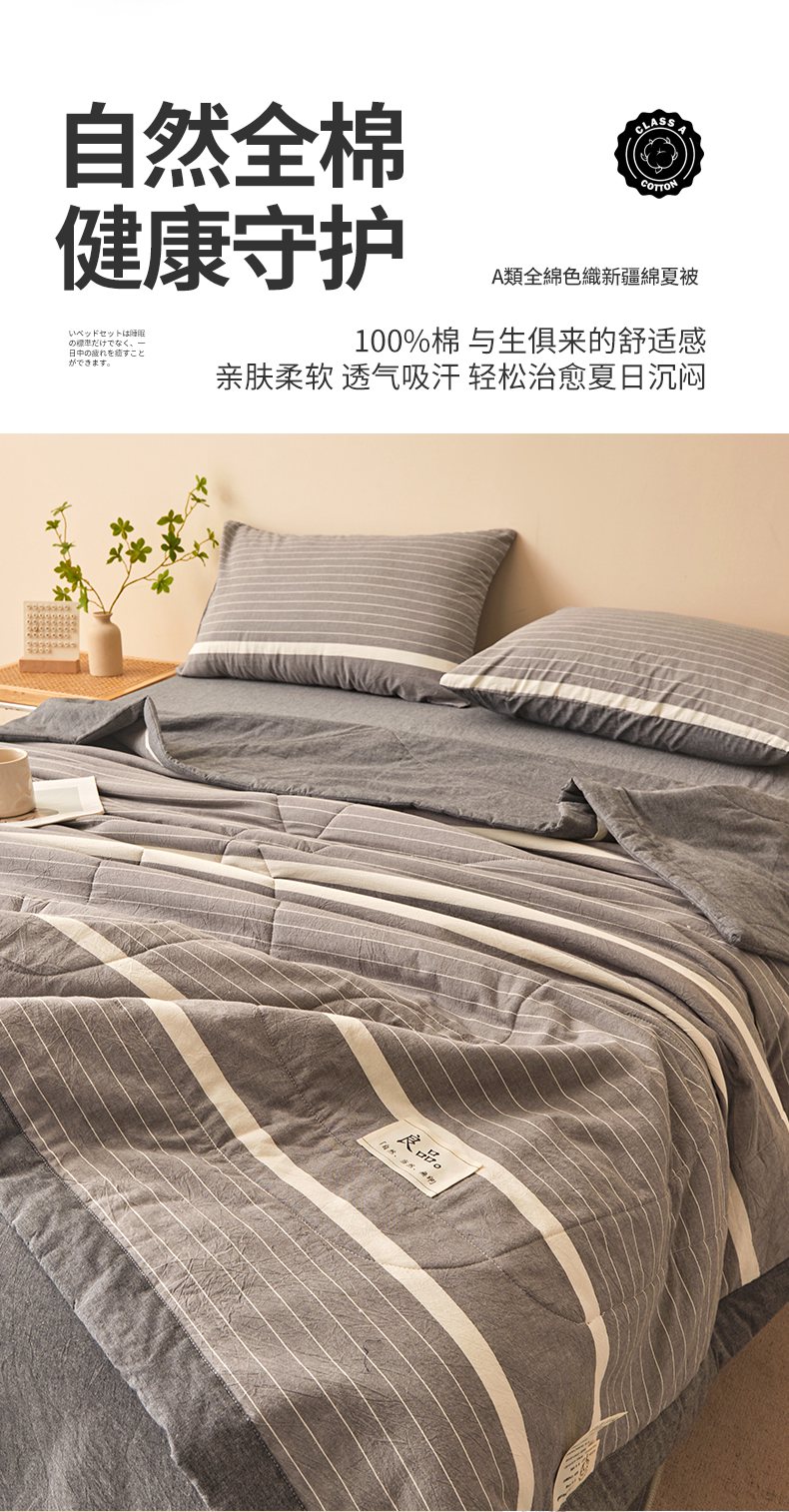 • 91家纺网 家纺一手货源 找家纺 秋泽家纺 2025新款全棉色织水洗棉棉花夏被夏凉被空调被 灰细条