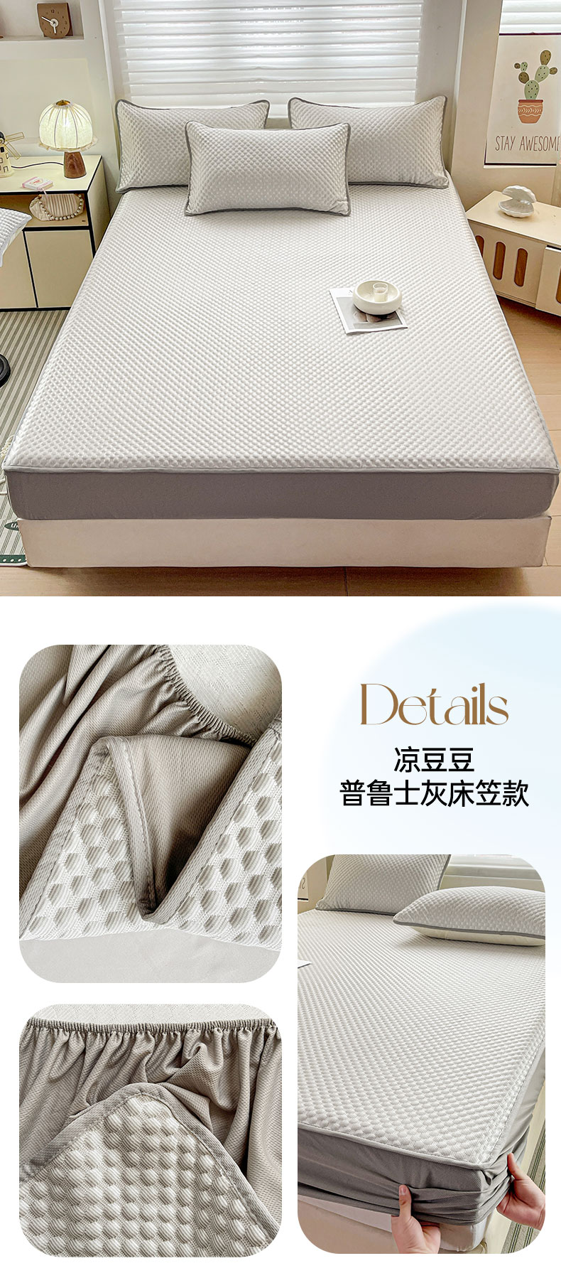 (总)灰鲸 2025新款冰豆豆床笠款凉席