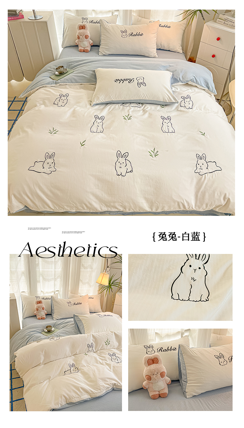 当前位置: 91家纺网 > 商品网购 > 床品套件 > 四件套 > 针织棉四件套 > 多乐家纺 2025新款超柔加厚有氧提花针织小竺棉绣花四件套(提供买家秀) 大脸猫-白蓝