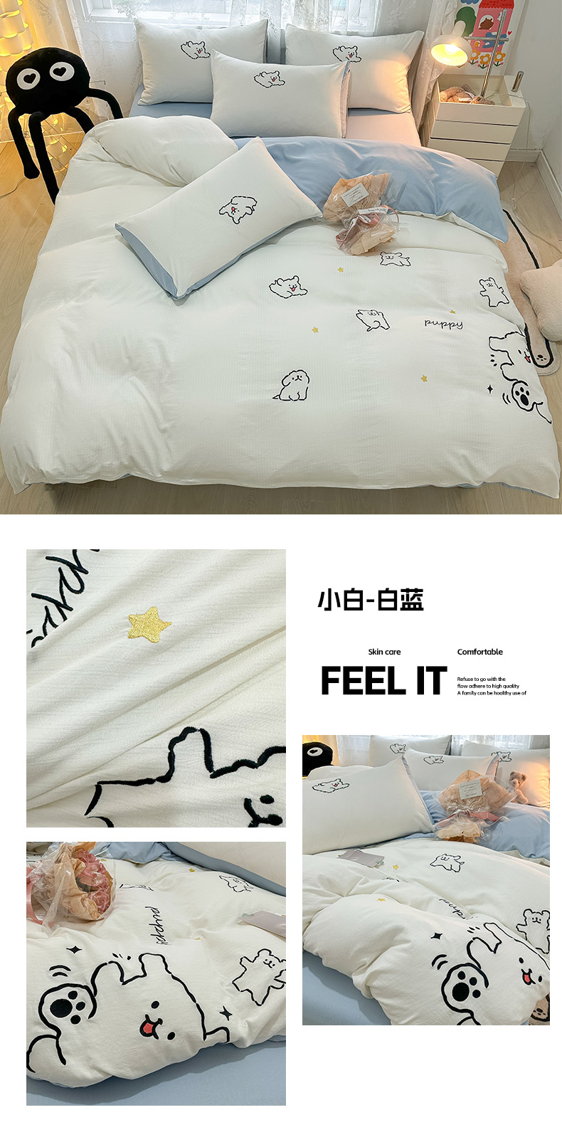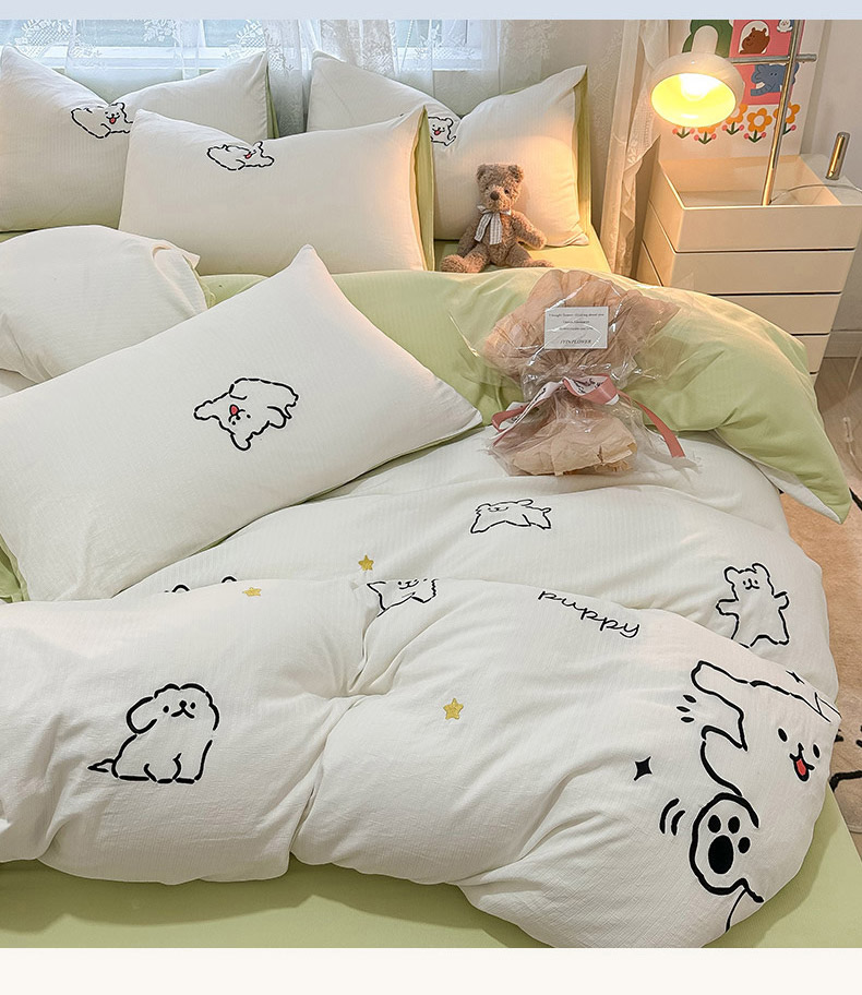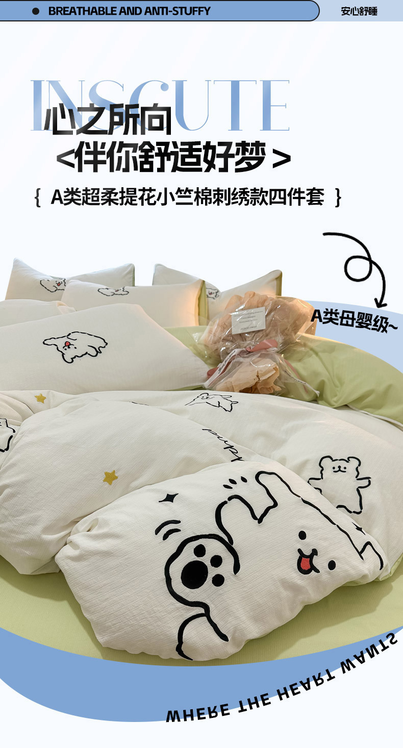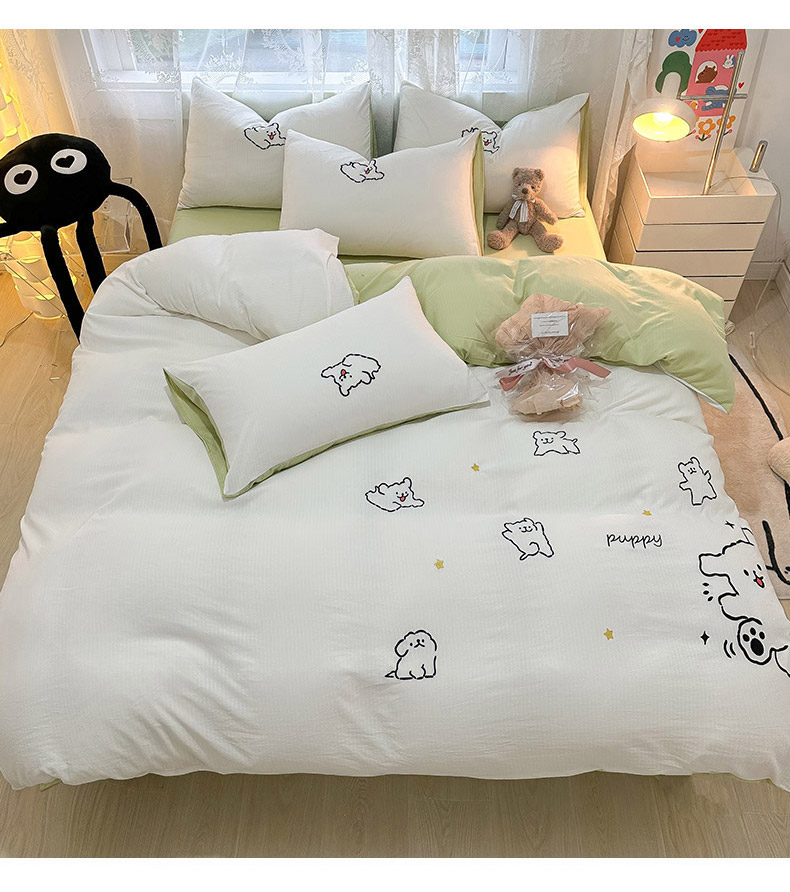 当前位置: 91家纺网 > 商品网购 > 床品套件 > 四件套 > 针织棉四件套 > 多乐家纺 2025新款超柔加厚有氧提花针织小竺棉绣花四件套(提供买家秀) 小白-白绿