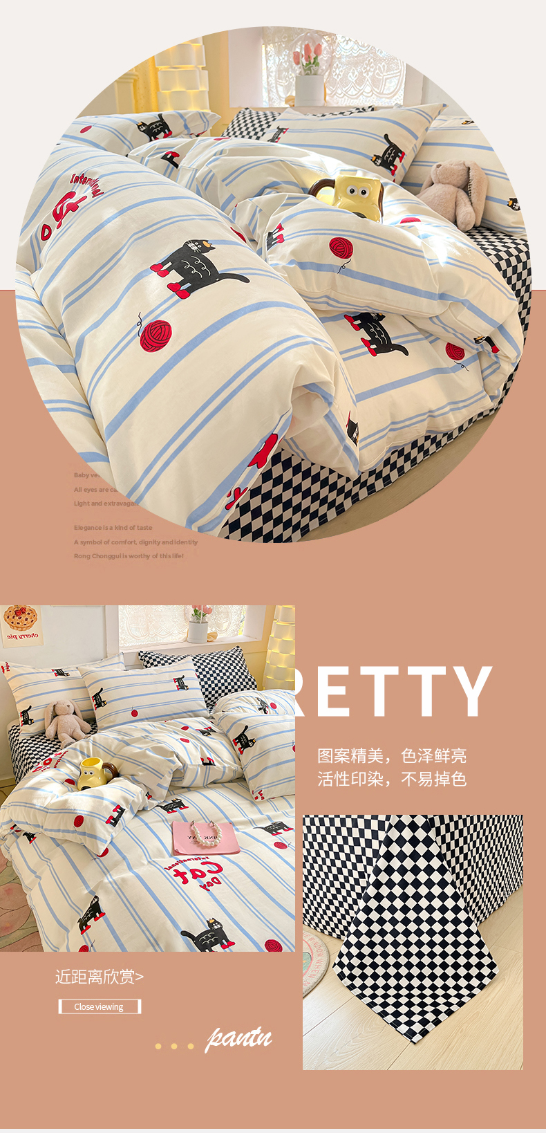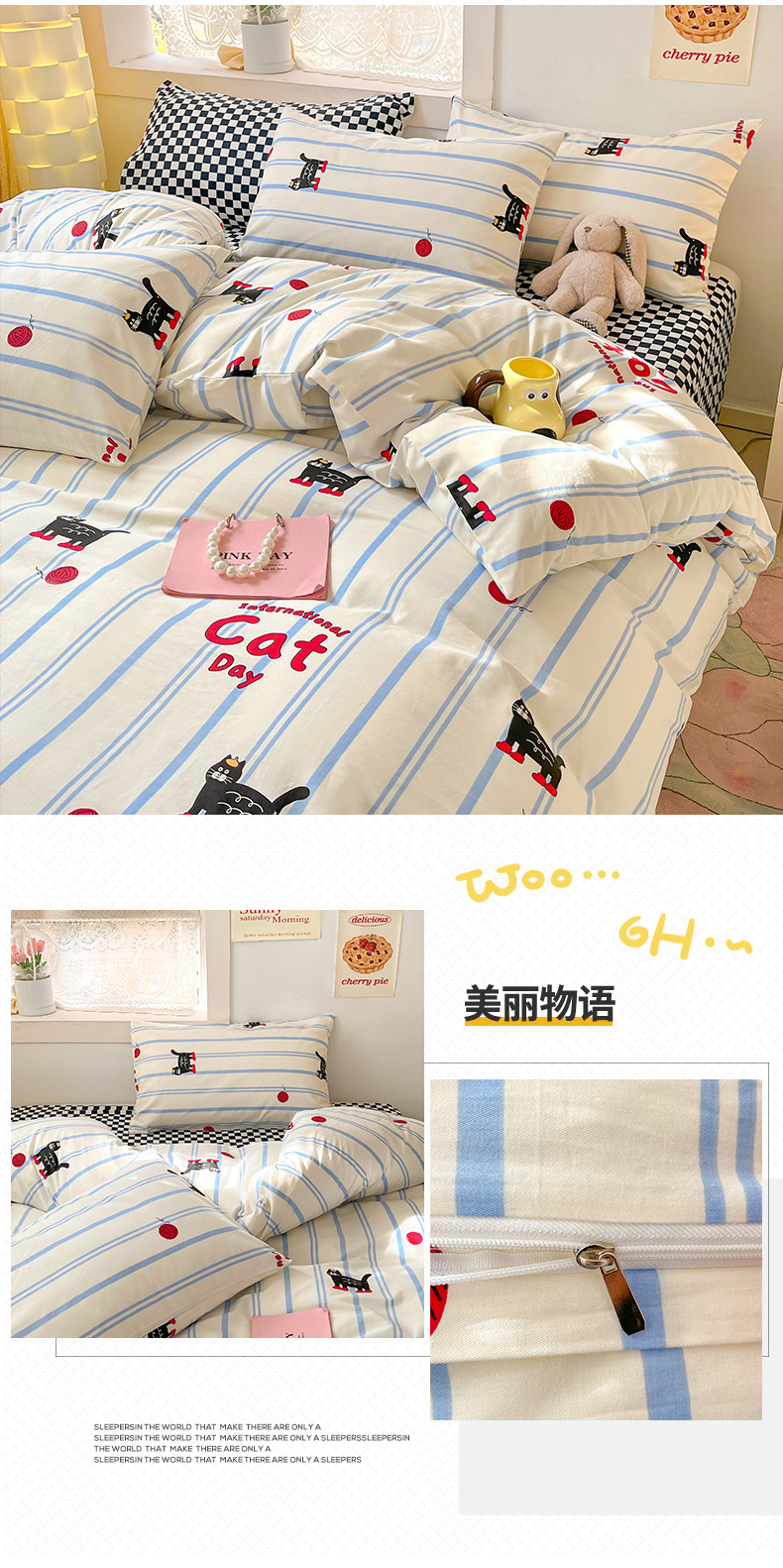 吉象家纺13070全棉四件套纯棉四件套直播小清新男孩女cat猫