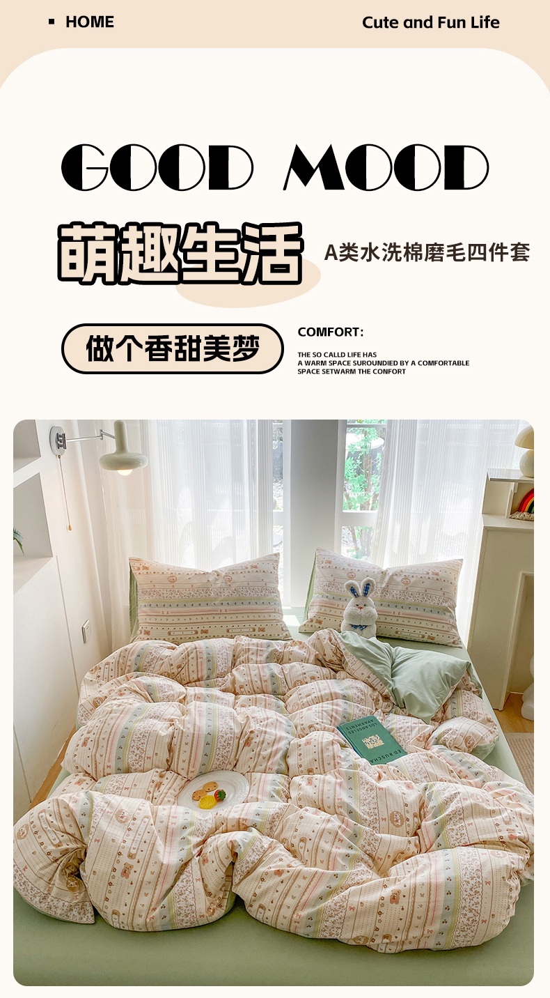 当前位置: 91家纺网 > 商品网购 > 床品套件 > 四件套 > 全棉普通四件套 > 梦嘉居 2025新款110克超柔云感棉四件套学生宿舍三件套四季款-平铺图 摩尔庄园
