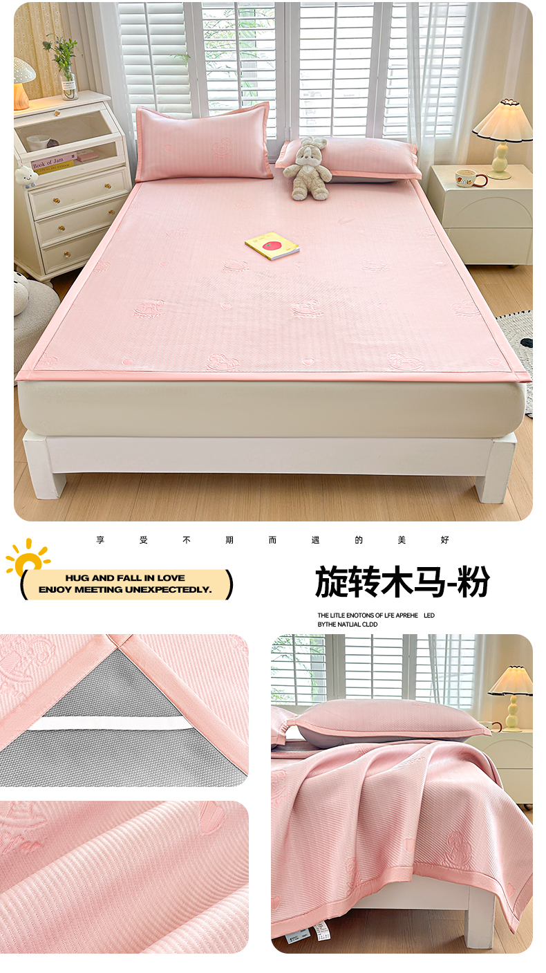 商品名称:春妮家纺 2025新款A类PE提花软席凉感冰豆豆凉席席子凉席 旋转木马-粉