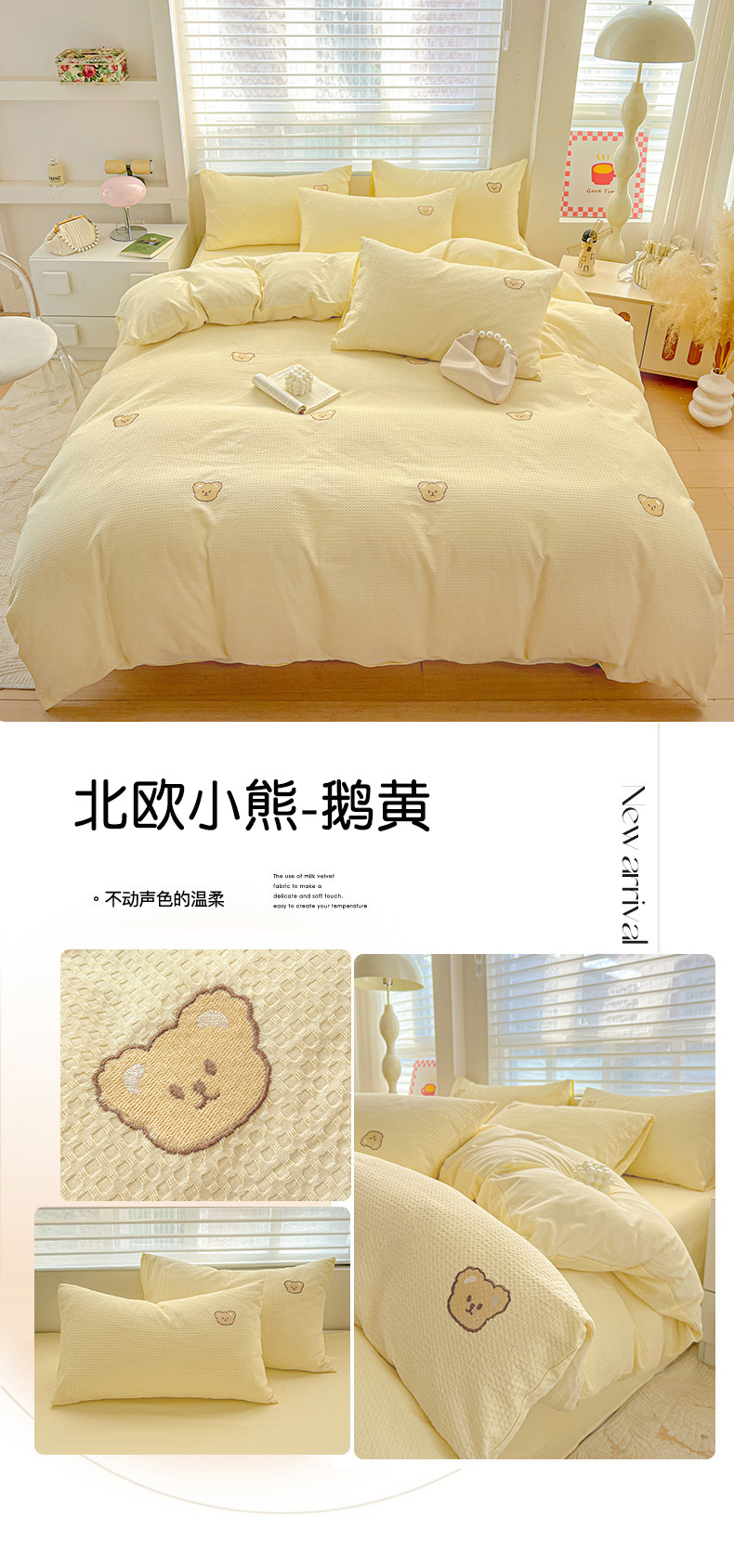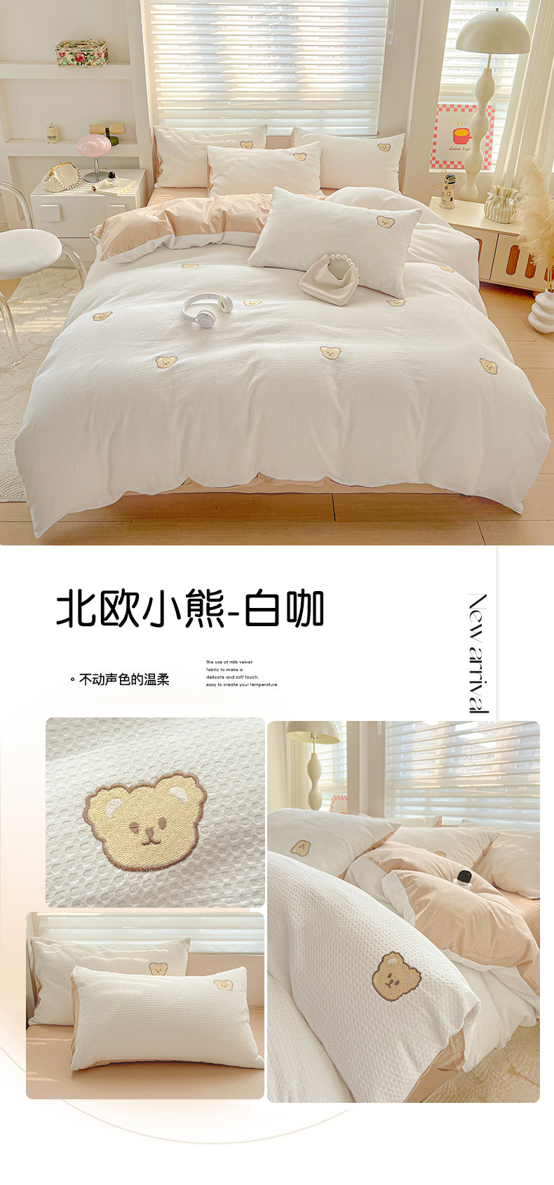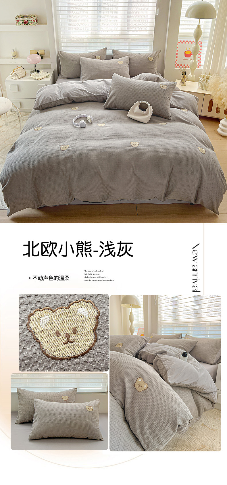 商品名称:(总)静家居 2025新款全棉纯棉华夫格北欧小熊刺绣四件套系列-风格二
