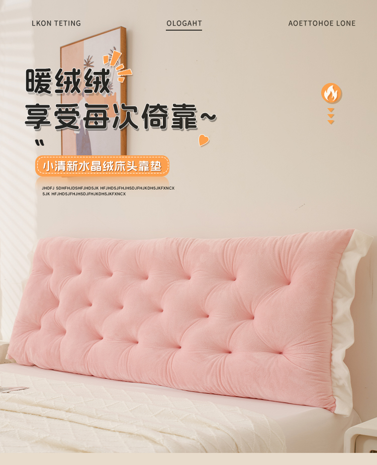(总)碧尔家居 2025新款荷兰绒弯型三角+头枕床头靠背,奶咖,天蓝,香槟,樱花粉
