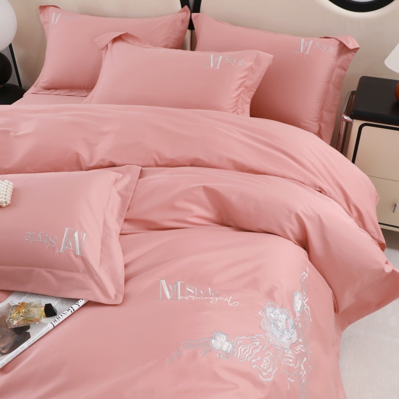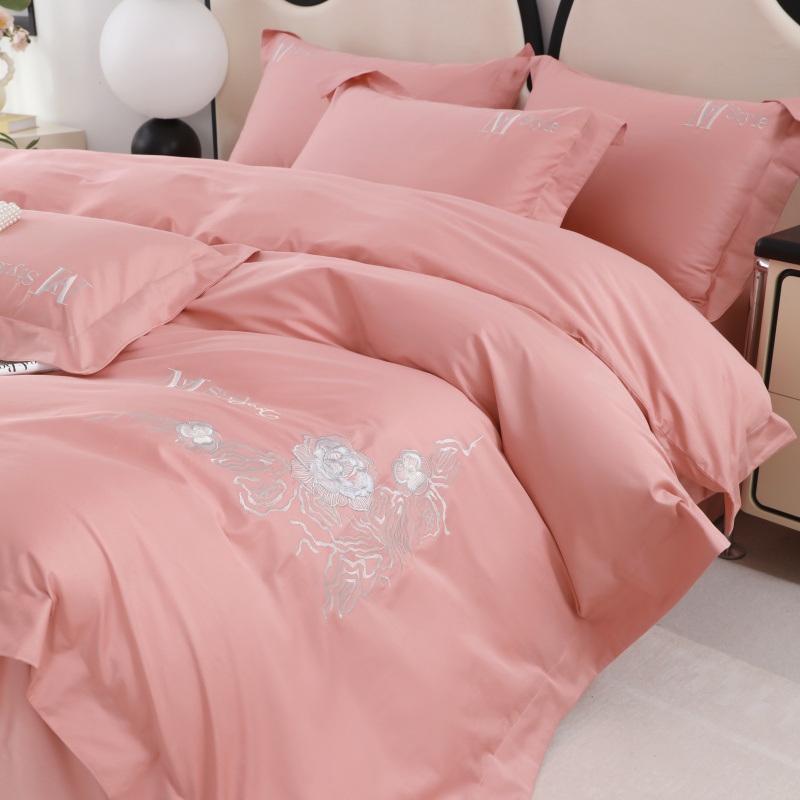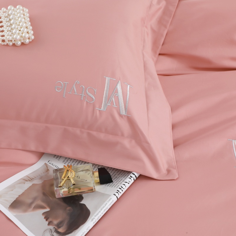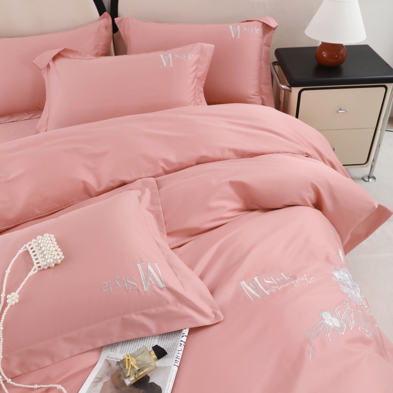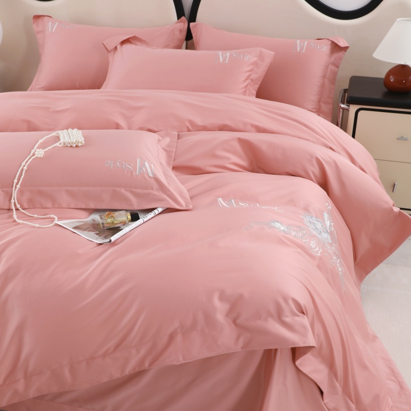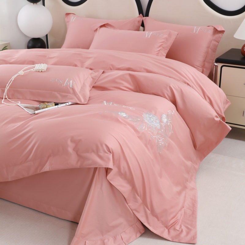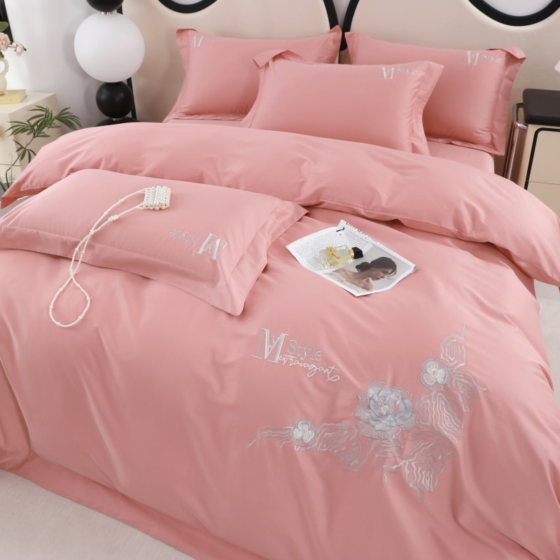 优姿家纺2025新品高端加密全棉100支绣花宽边四件套 淡雅生活-粉色