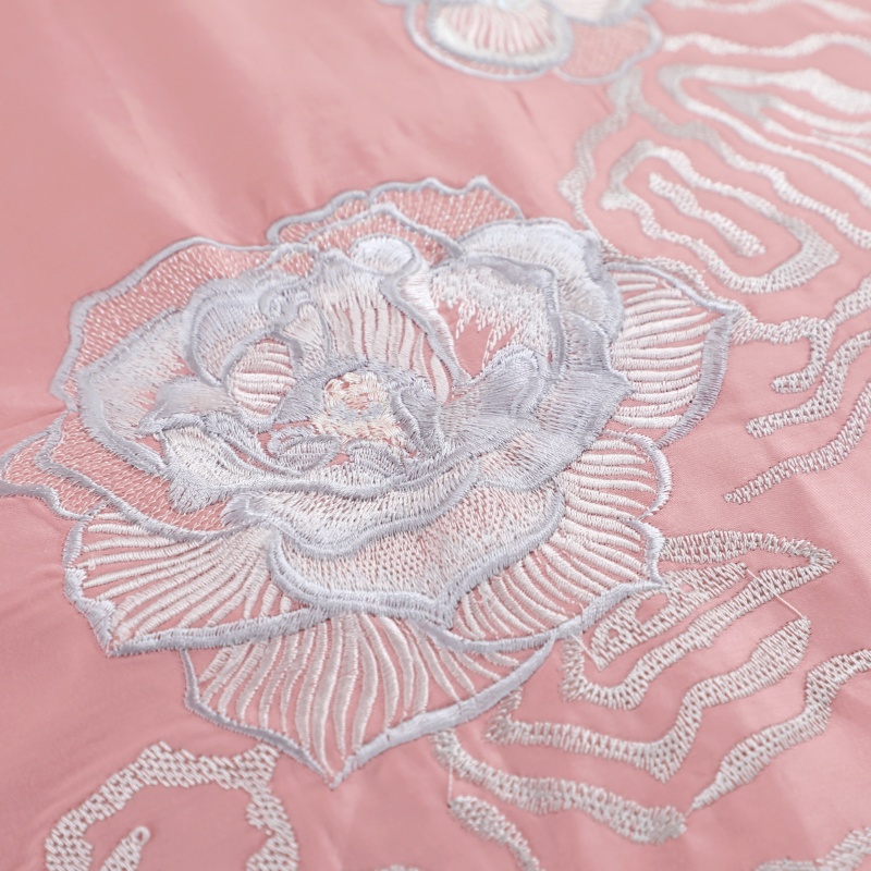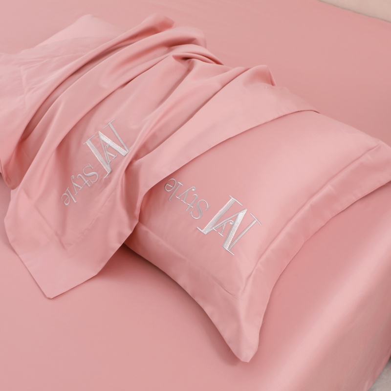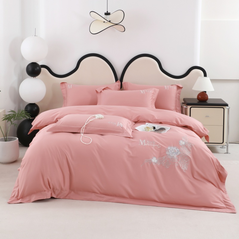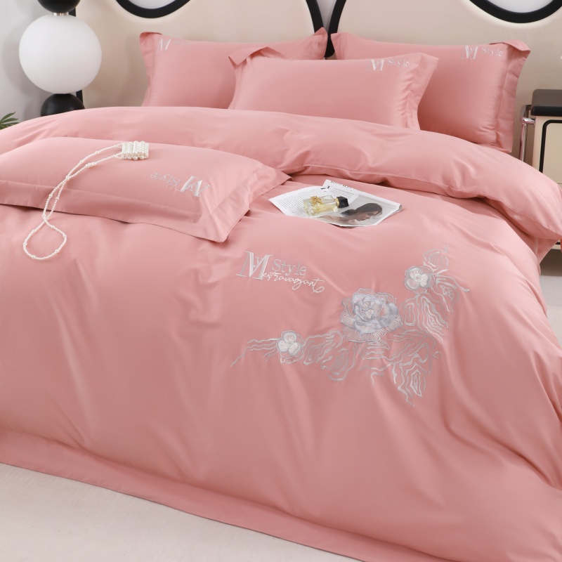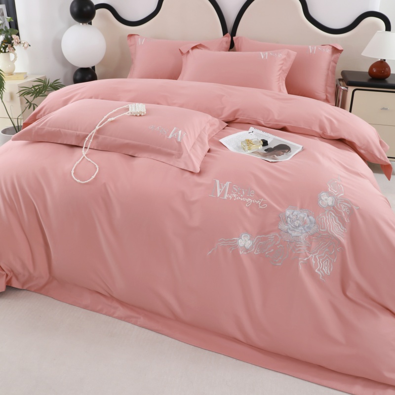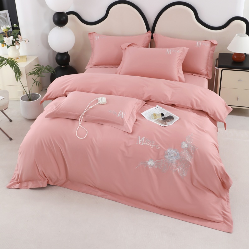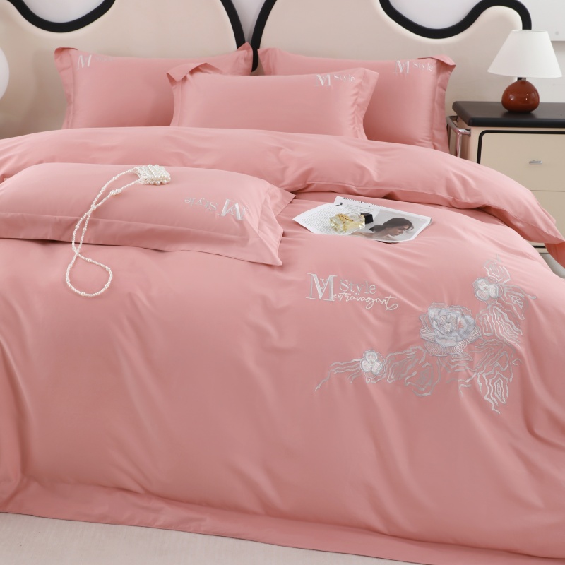 优姿家纺2025新品高端加密全棉100支绣花宽边四件套 淡雅生活-粉色