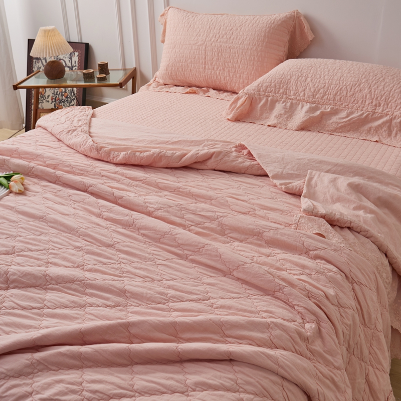 (总)上喜2025新款韩国全棉砂洗床盖系列,粉色,黄色,灰色,绿色,紫色