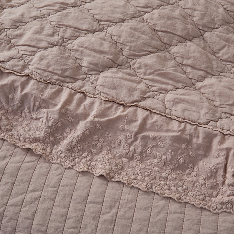 (总)上喜 2025新款棉麻小花刺绣款床盖多功能被子系列,麻本色,麻粉色