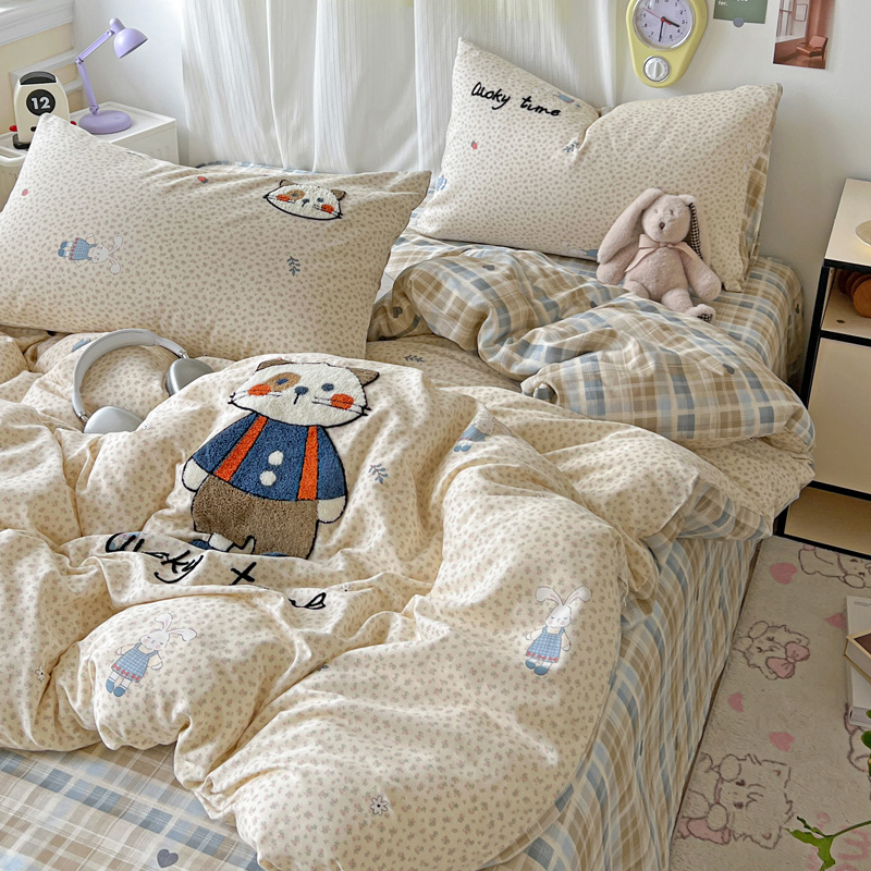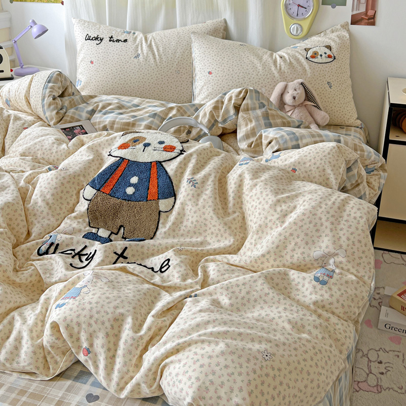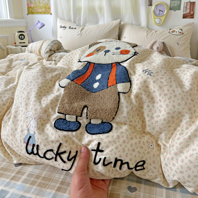 乐童家纺 2025新款13370纯棉毛巾绣呆萌系列四件套第二波 奶呼兔兔