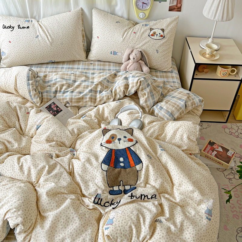 (总)乐童家纺 2025新款小清新牛奶绒毛巾绣四件套-第三波,波点小熊,调皮的小熊,花园小兔咖,小猪派派,樱桃兔,波点米菲兔,彩色小猫