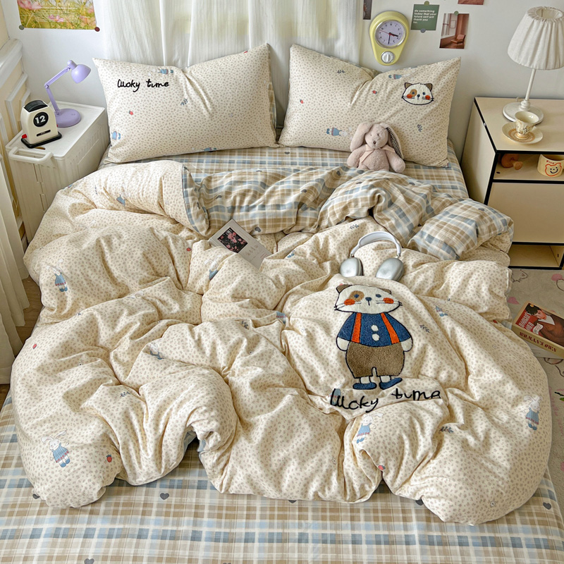 (总)乐童家纺 2026新款全棉网红直播爆款吊边一字绣工艺款四件套,豹纹奶喵-蓝,超能小柴,春日兔影,蜂蜜熊熊,红茶兔兔,凯蒂软糖咖,快乐小熊,腊肠小狗,帽子柯基,梦幻童乡,少女蝴蝶结,甜莓手记,微花耳耳-粉,星星柯基,珍妮小兔