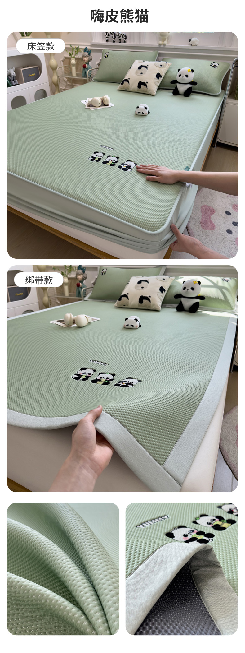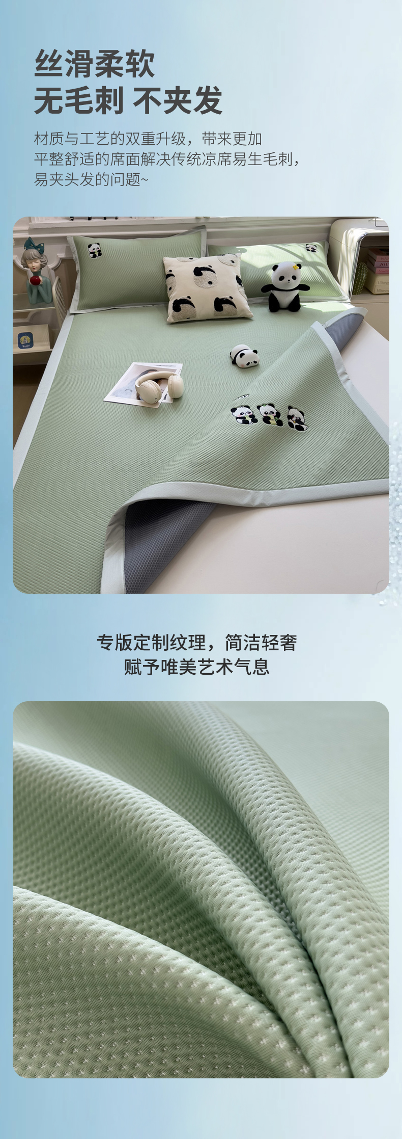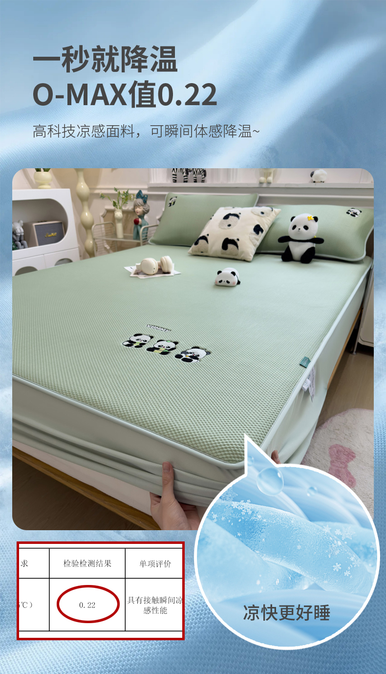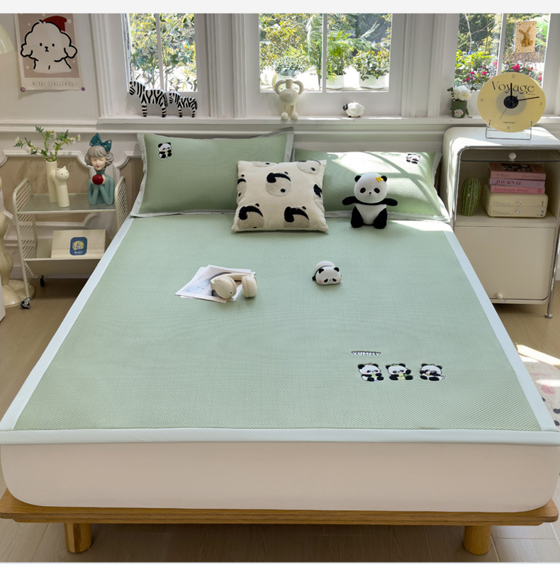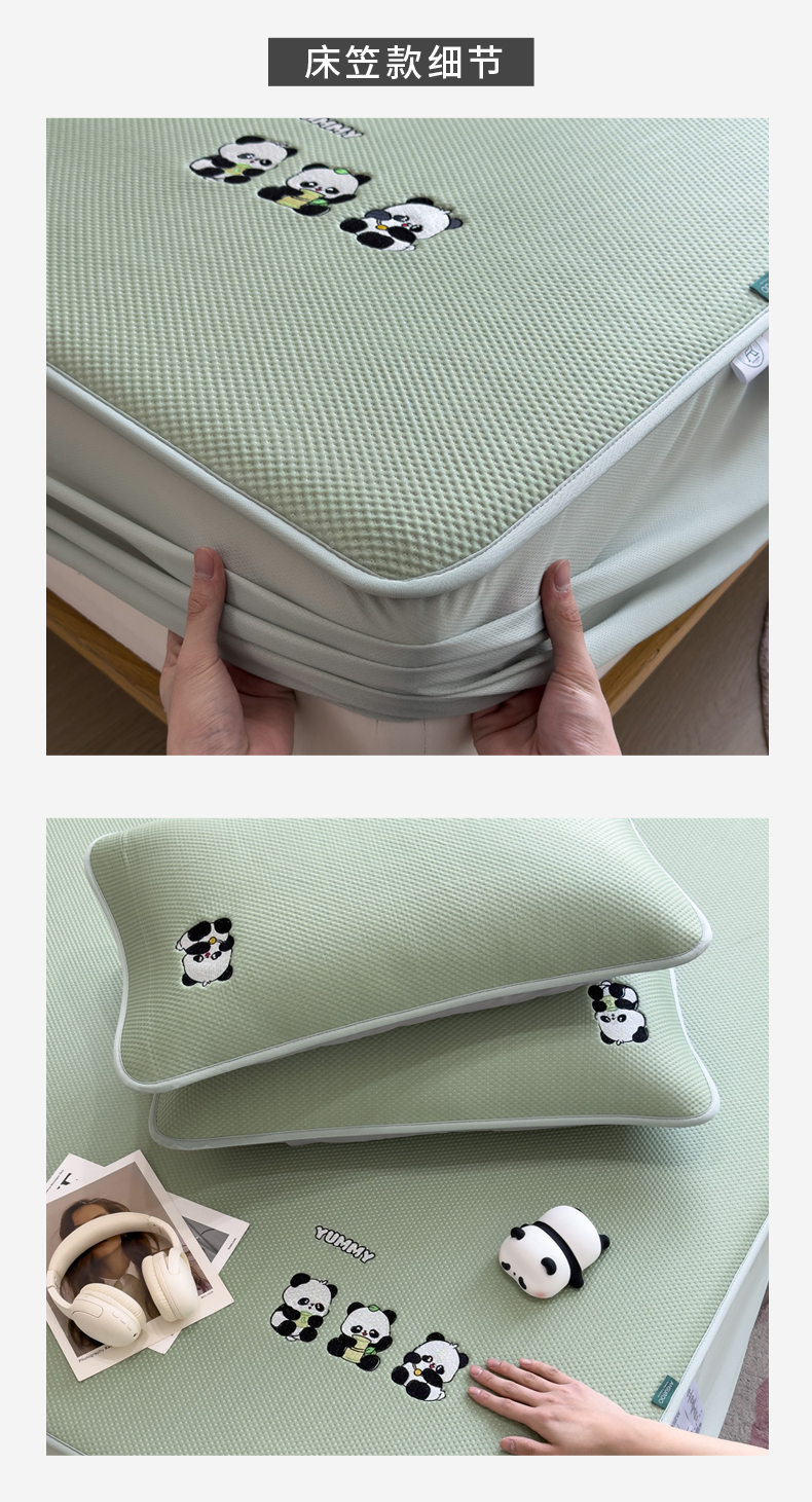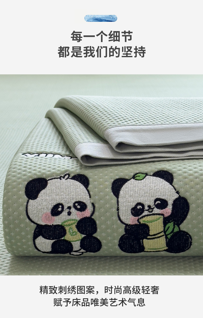 (总)席世家 2025新款A类凉感冰豆豆凉席-花卉卡通系列,呆萌熊猫,绿意,萌兔,小熊-粉,小熊-蓝,花漾