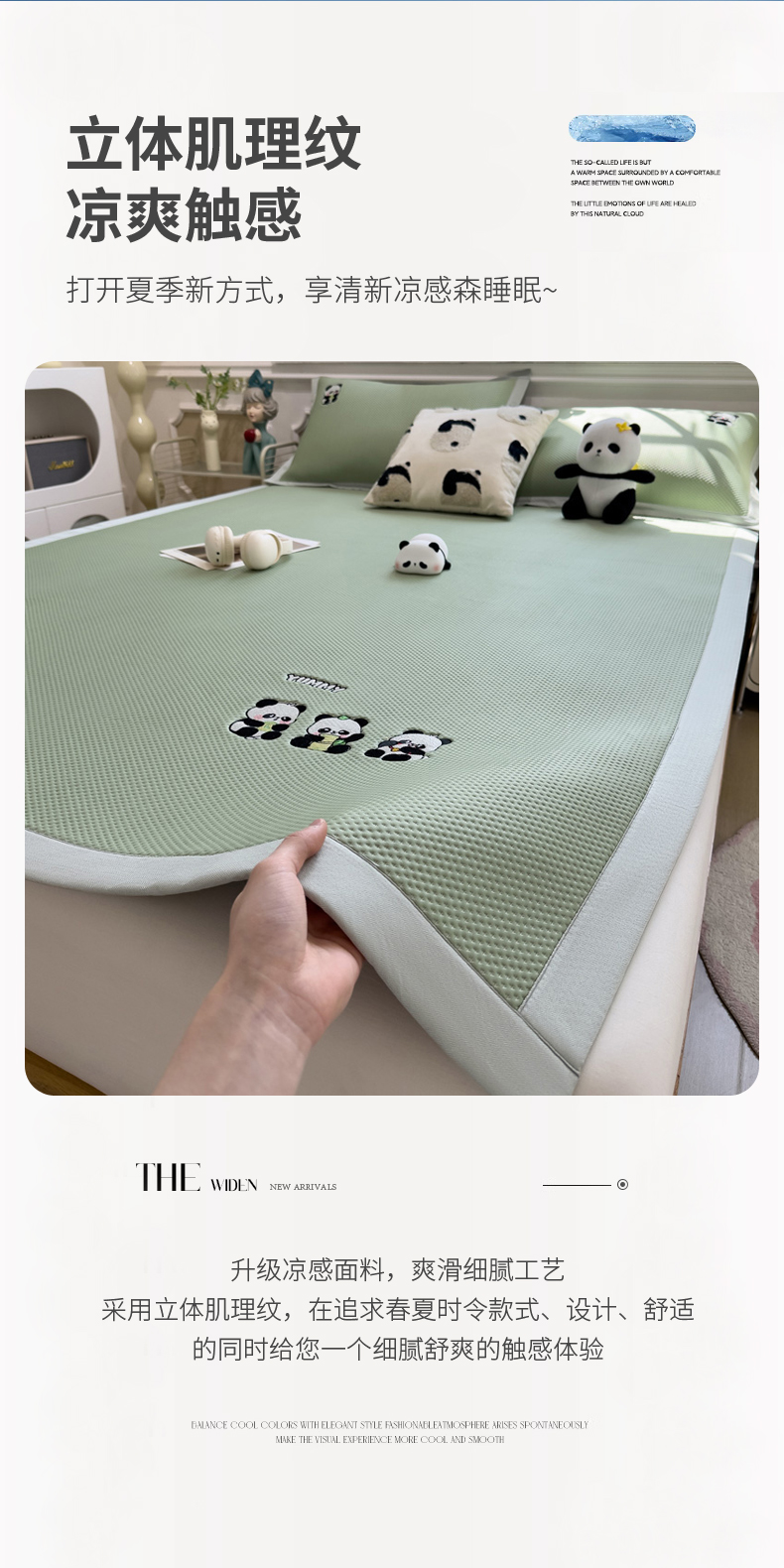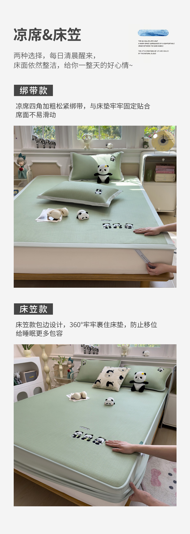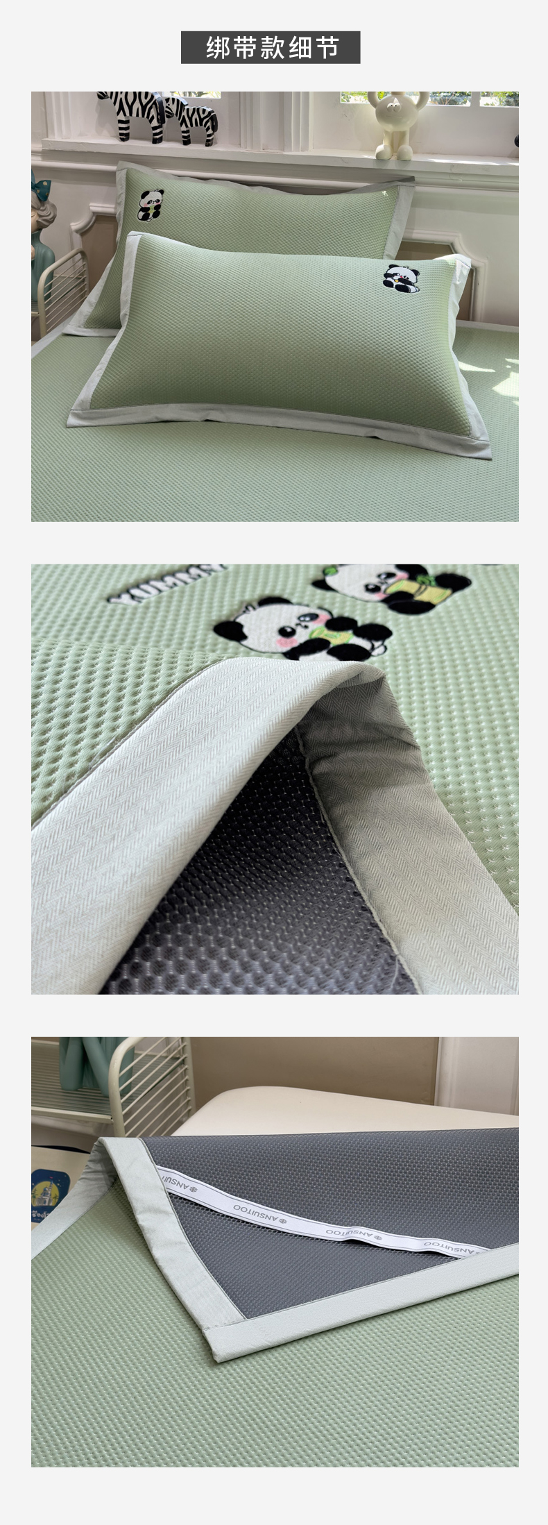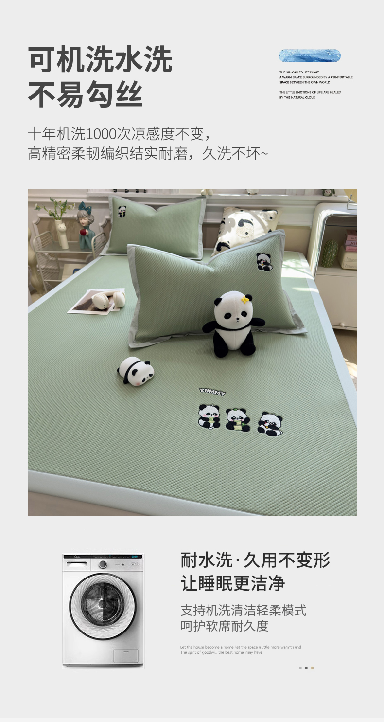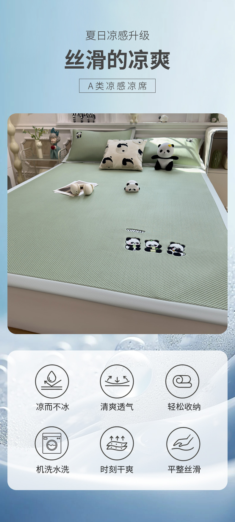 (总)席世家 2025新款A类凉感冰豆豆凉席-花卉卡通系列,呆萌熊猫,绿意,萌兔,小熊-粉,小熊-蓝,花漾