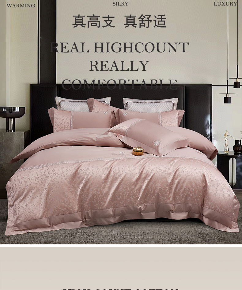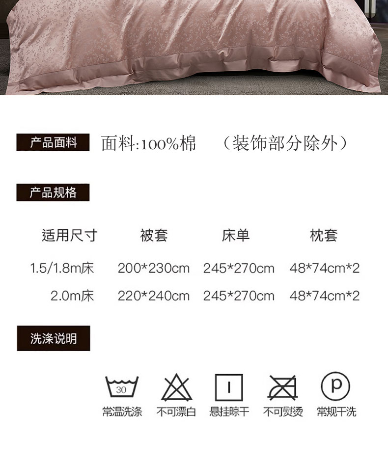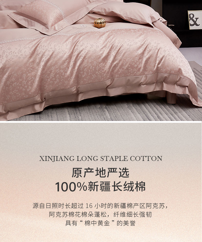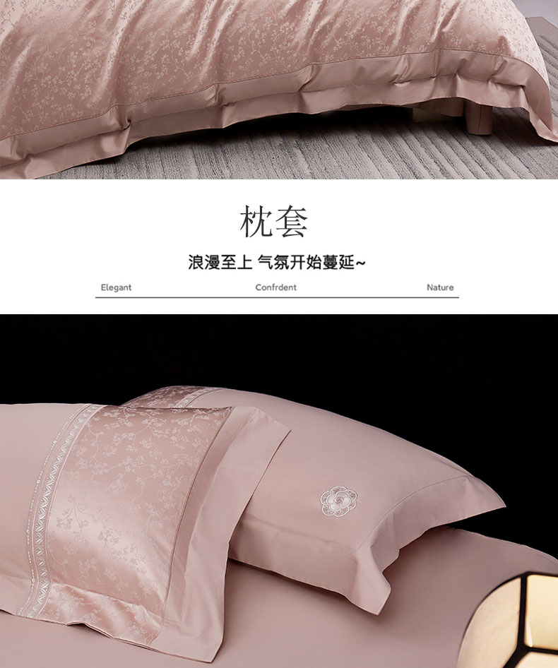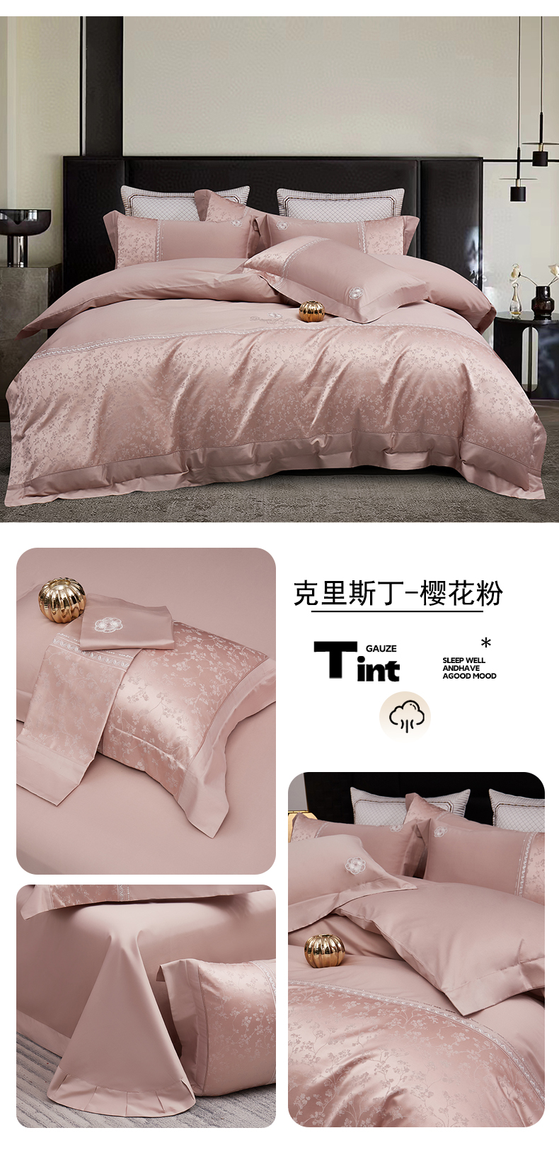 商品名称:蒂爵 2025新款居家长绒棉提花四件套克里斯汀系列 樱花粉