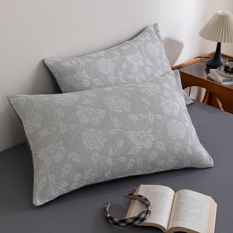 商品名称:倾慕 2025新款A类全棉多层纱玫瑰单枕套 浅灰玫瑰