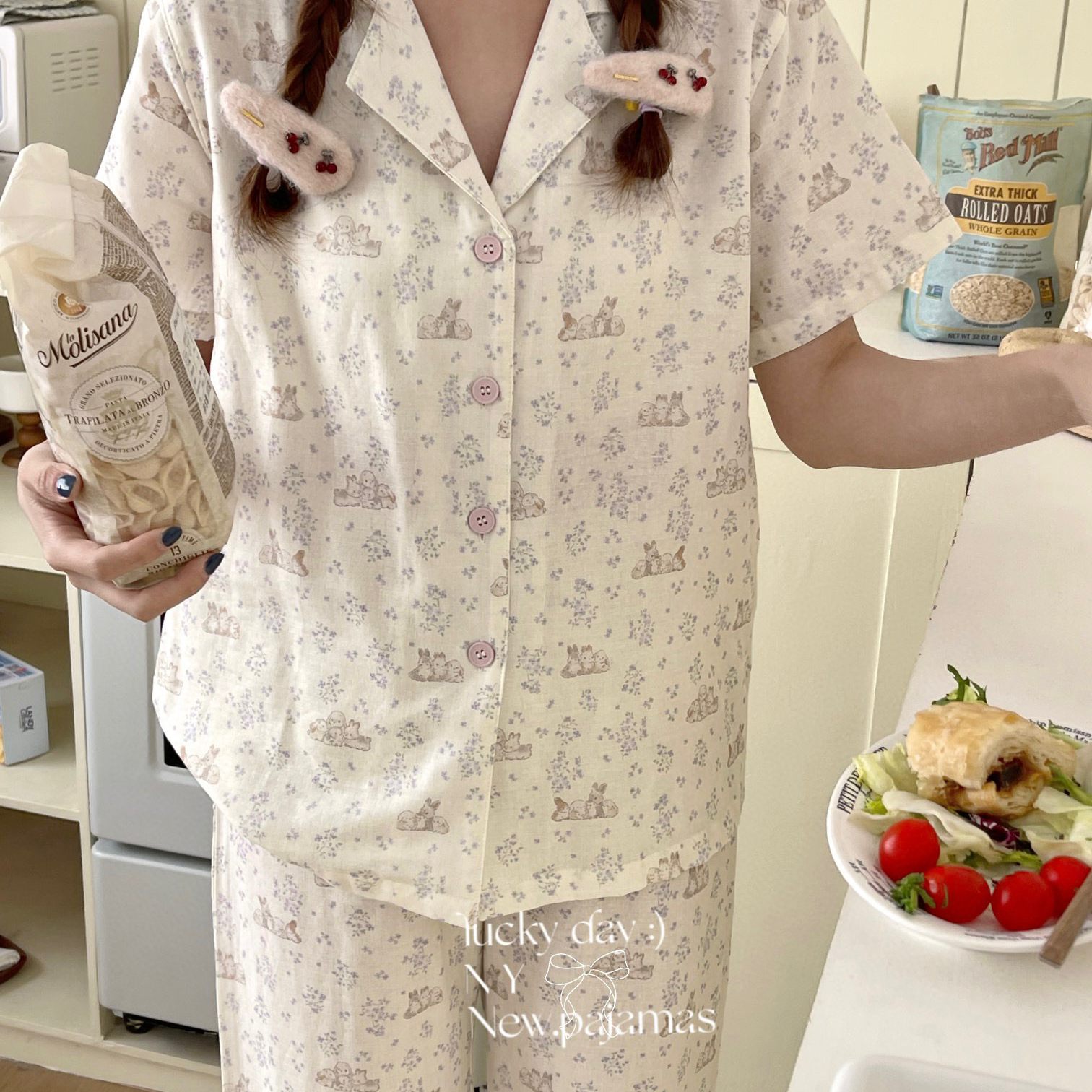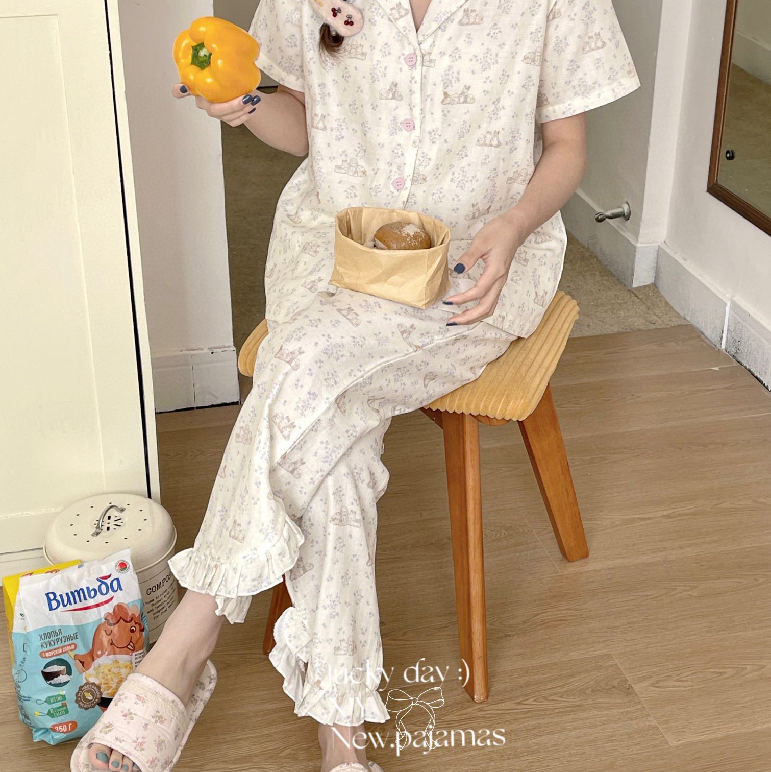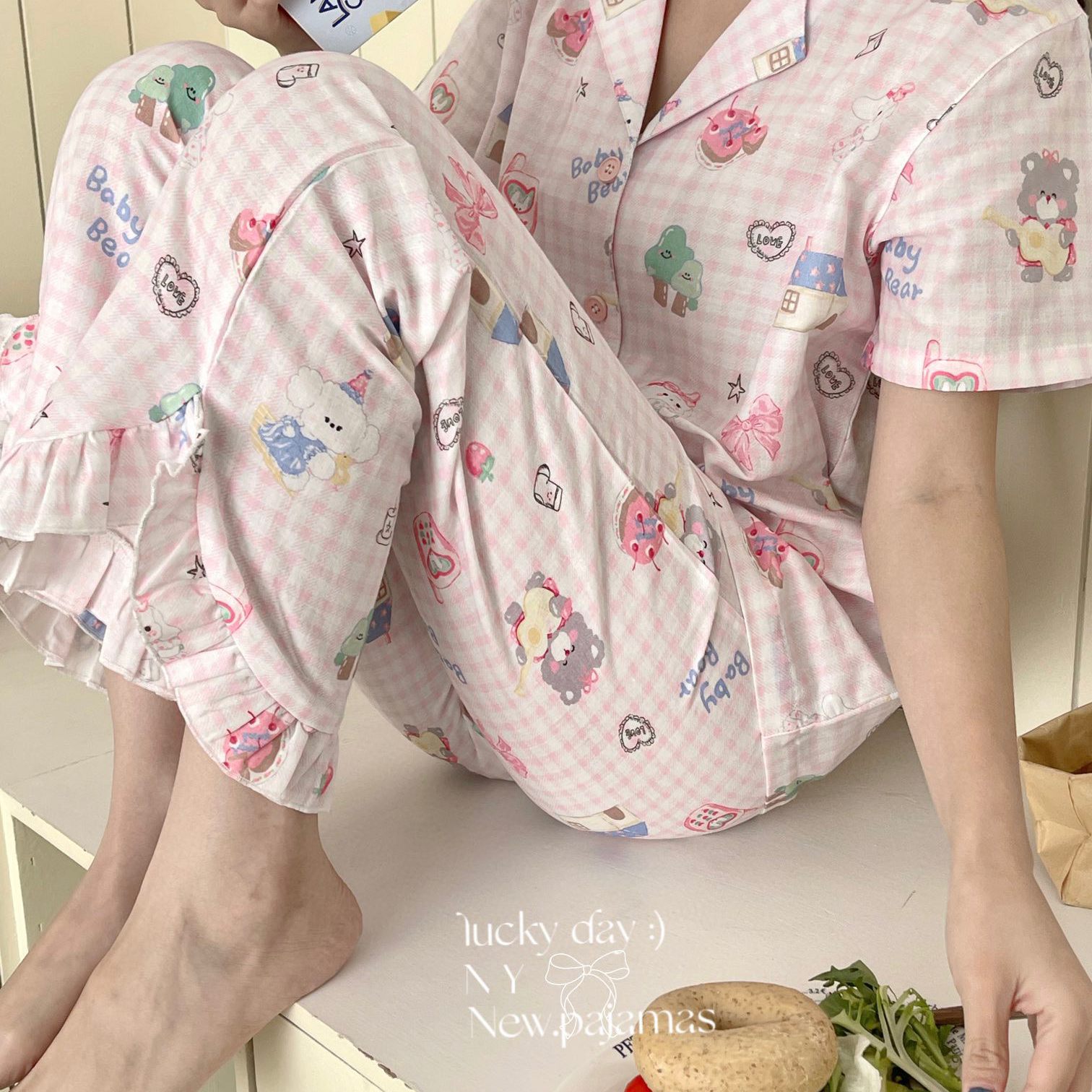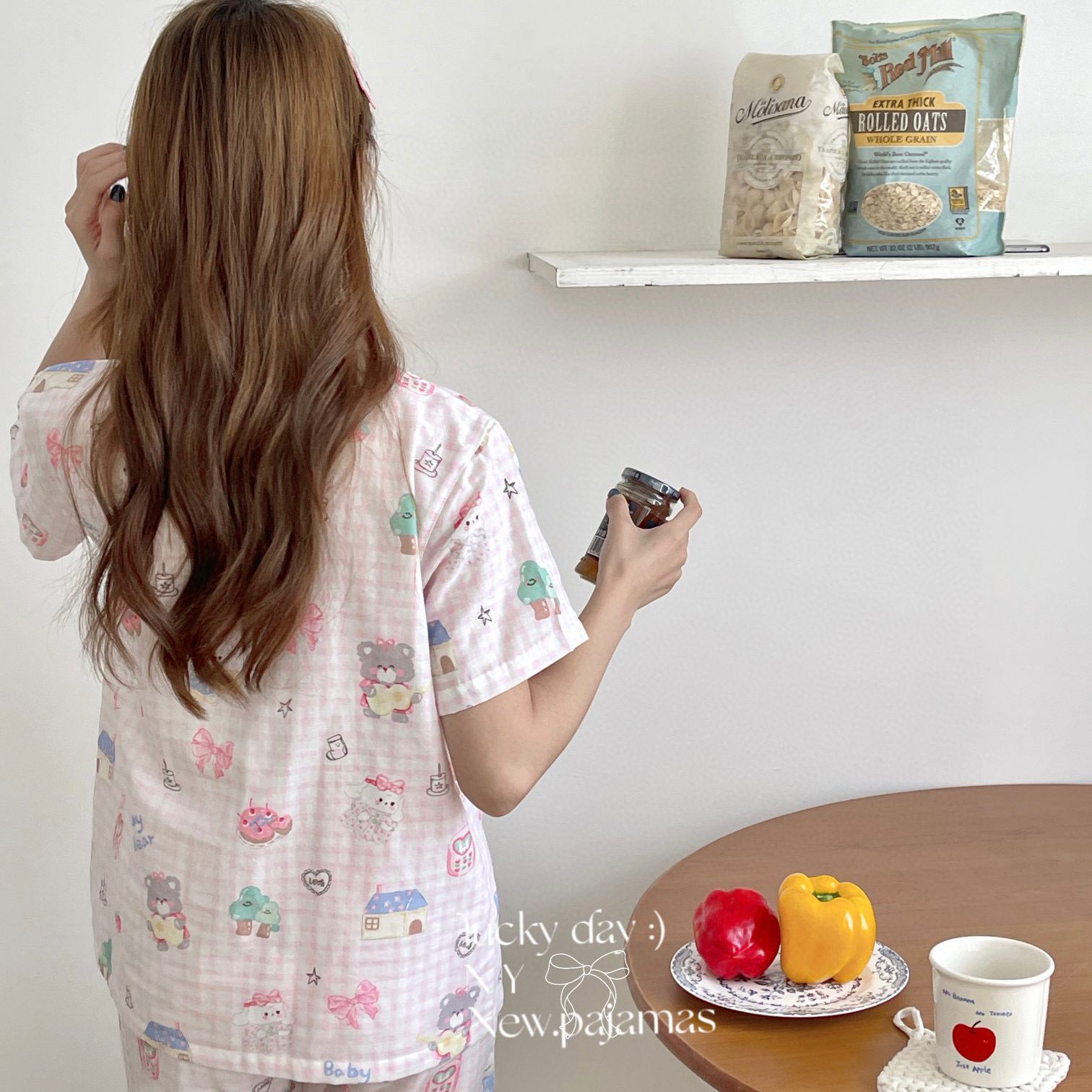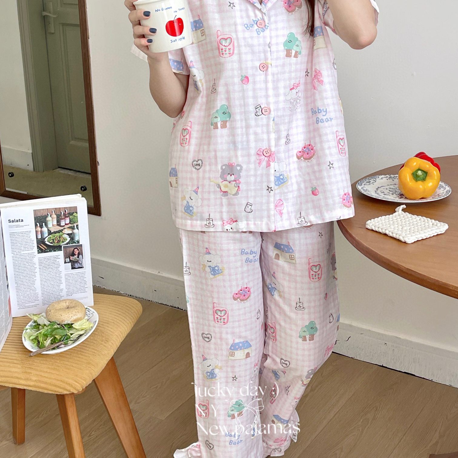 (总)纽约生活 2025新款绉布圆领开扣长袖长裤(会员-5),波比熊,黑碎花猫咪,蝴蝶结粉熊,花花狗,蓝碎花,塞纳花房