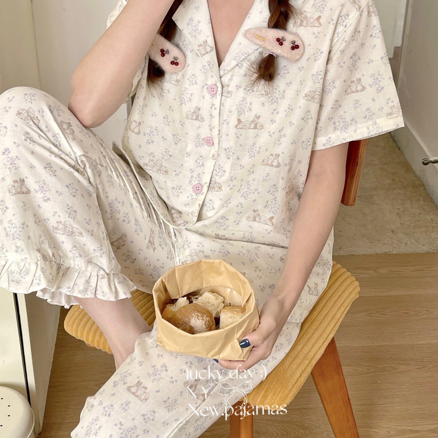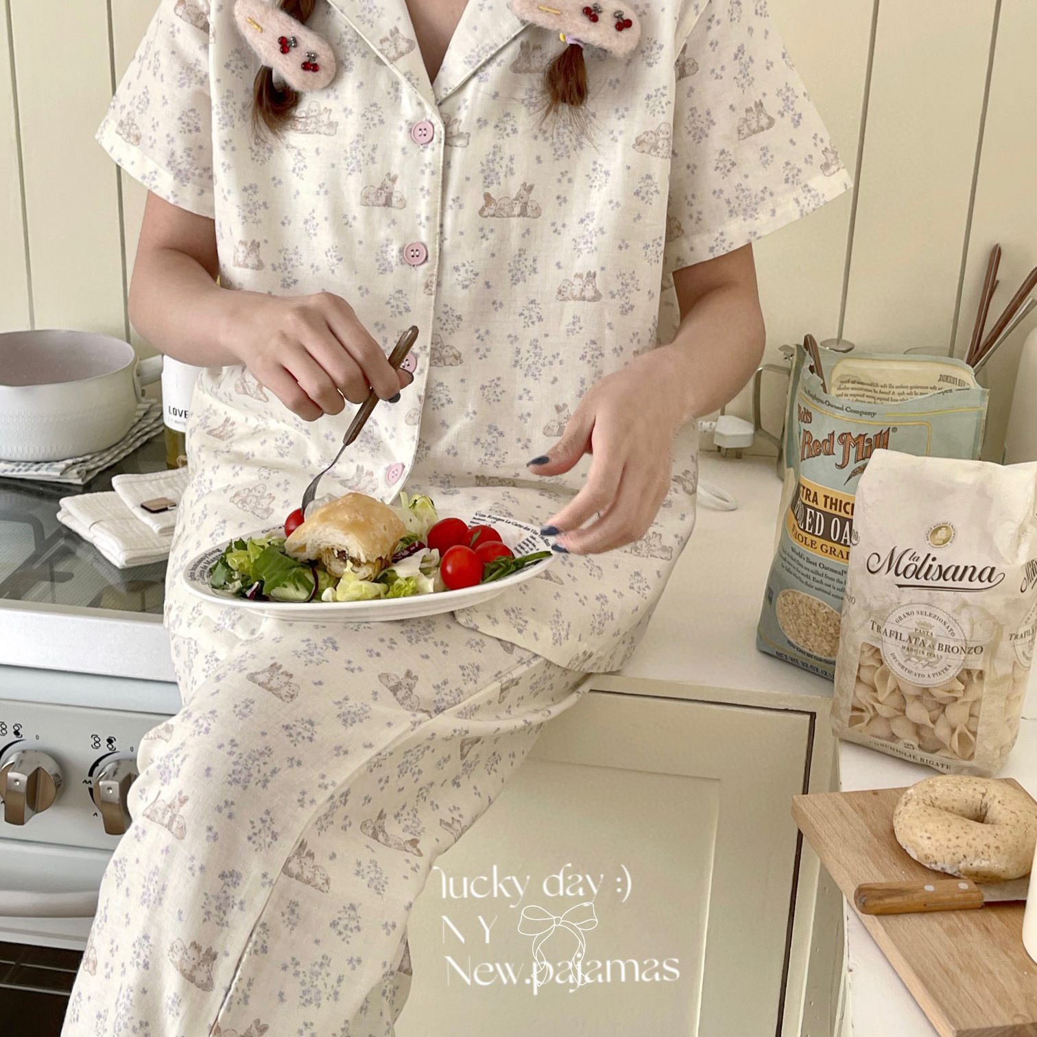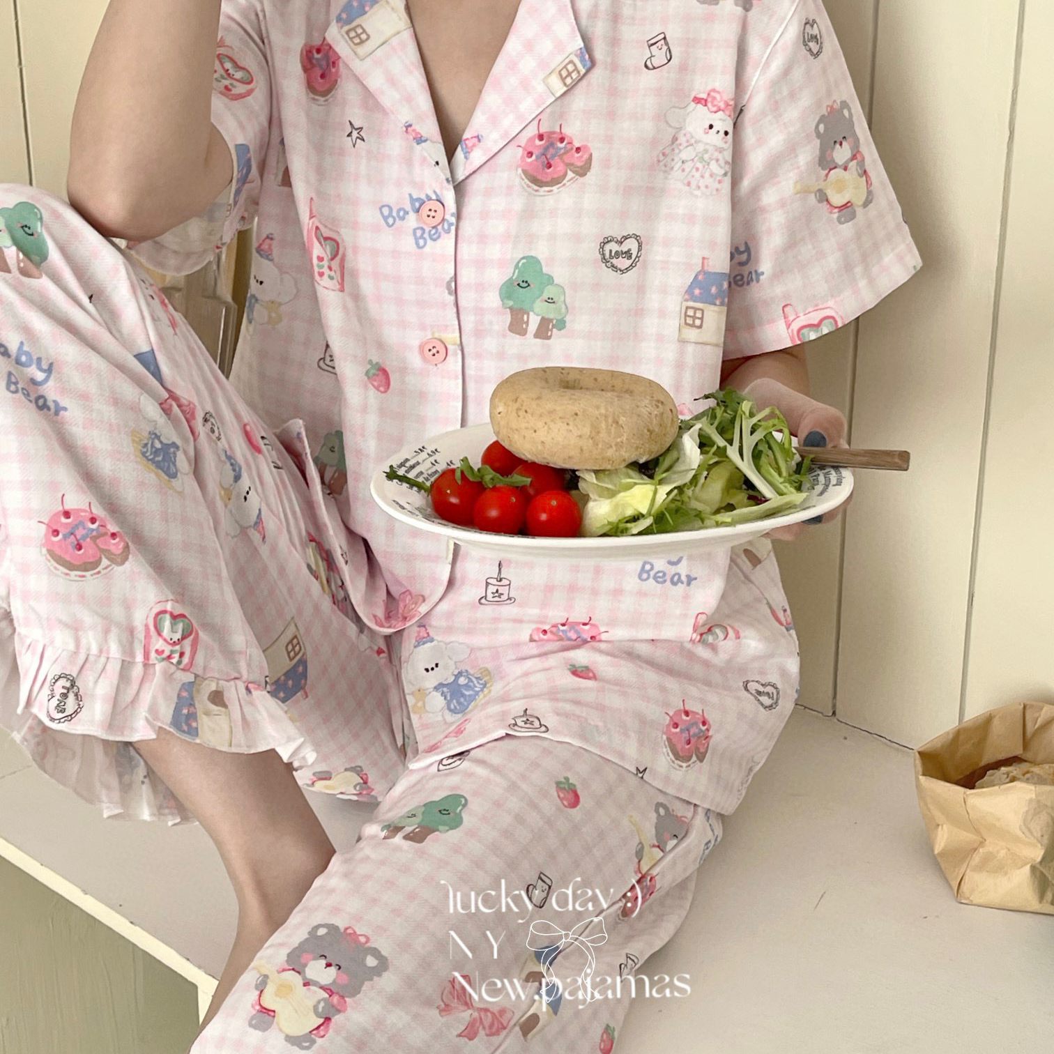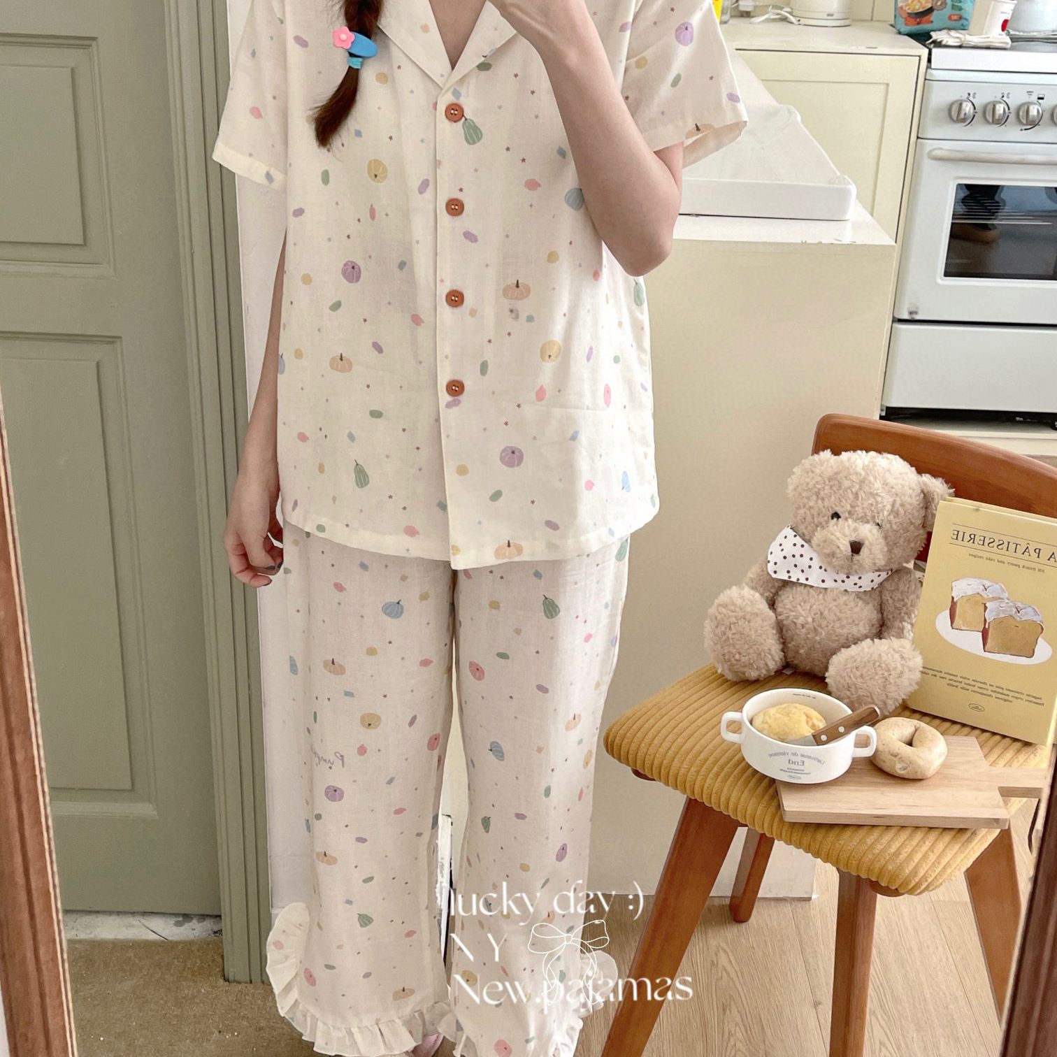 (总)纽约生活 2025新款绉布圆领开扣长袖长裤(会员-5),波比熊,黑碎花猫咪,蝴蝶结粉熊,花花狗,蓝碎花,塞纳花房