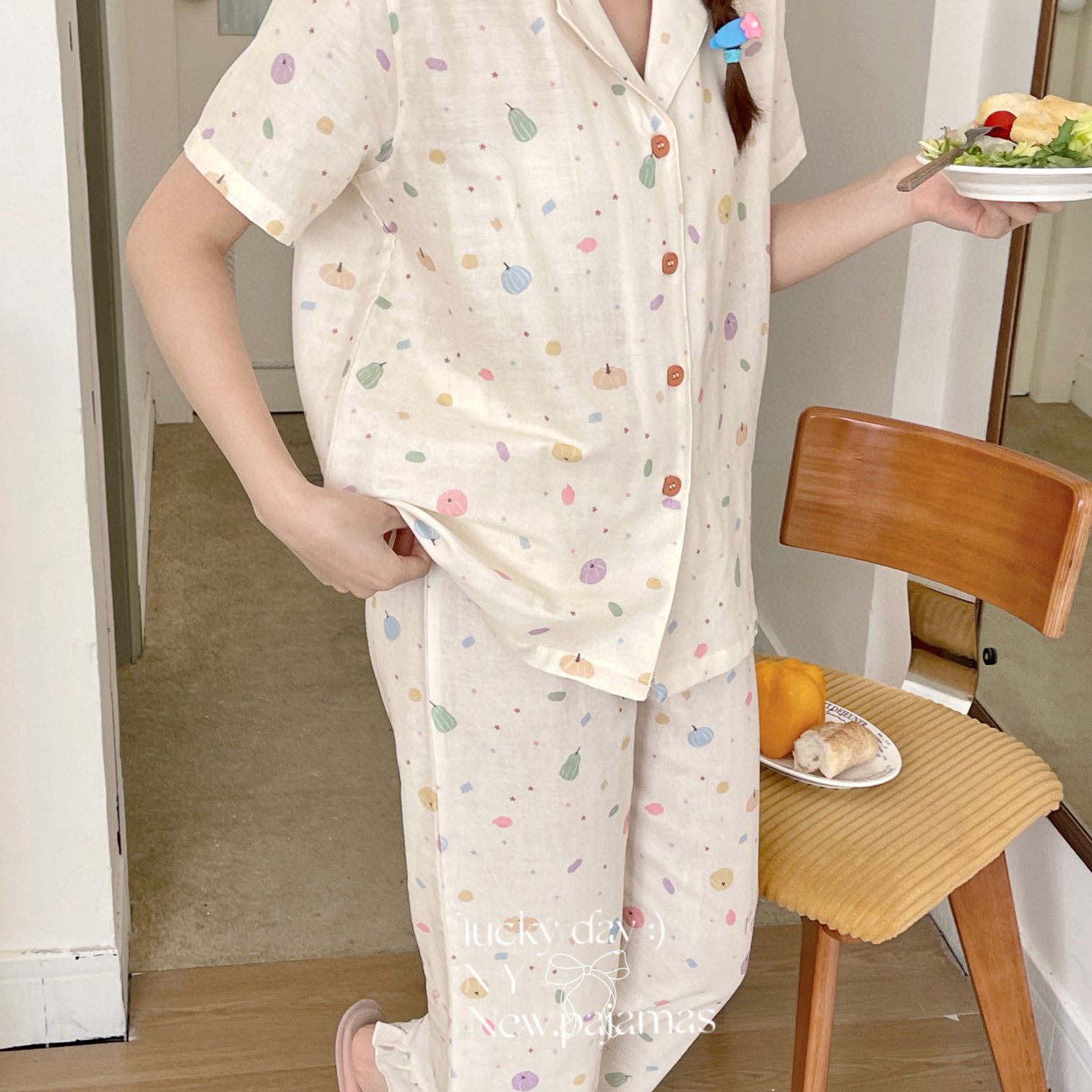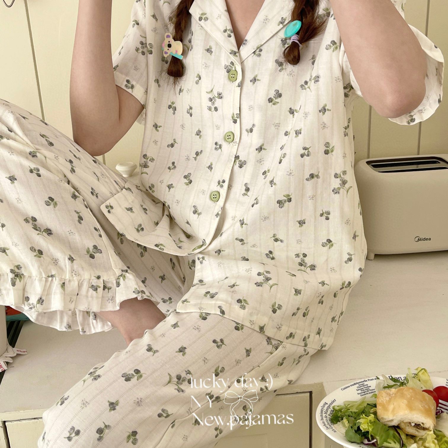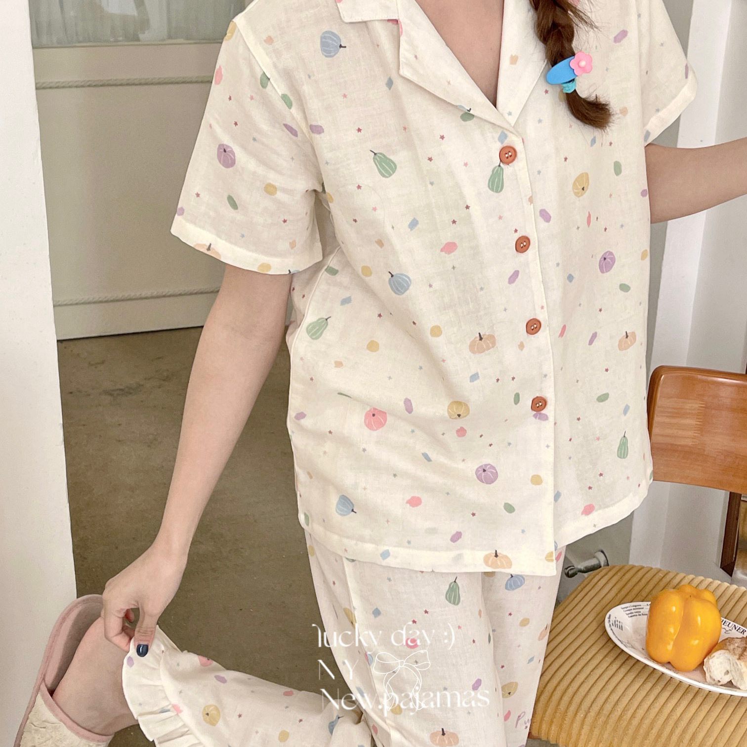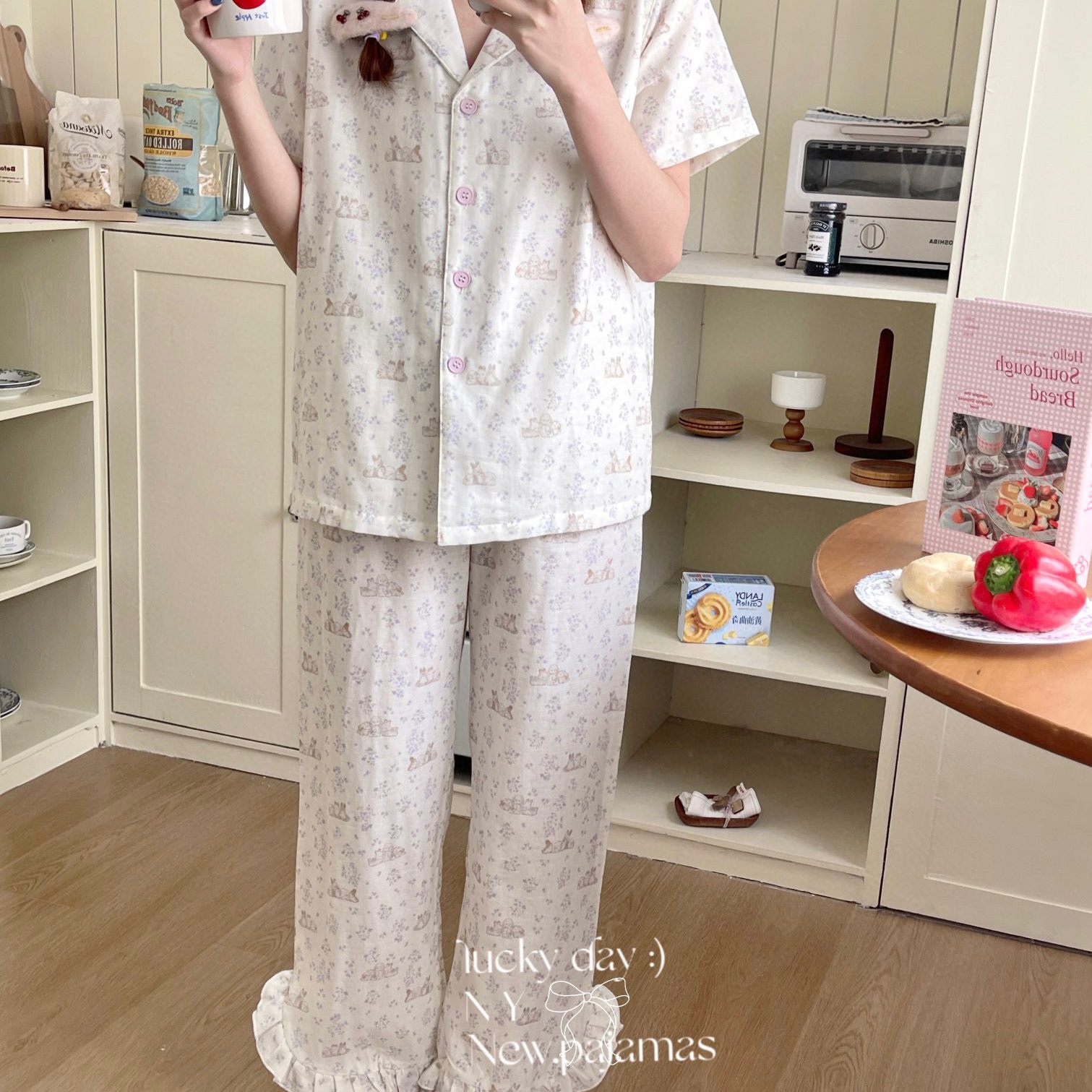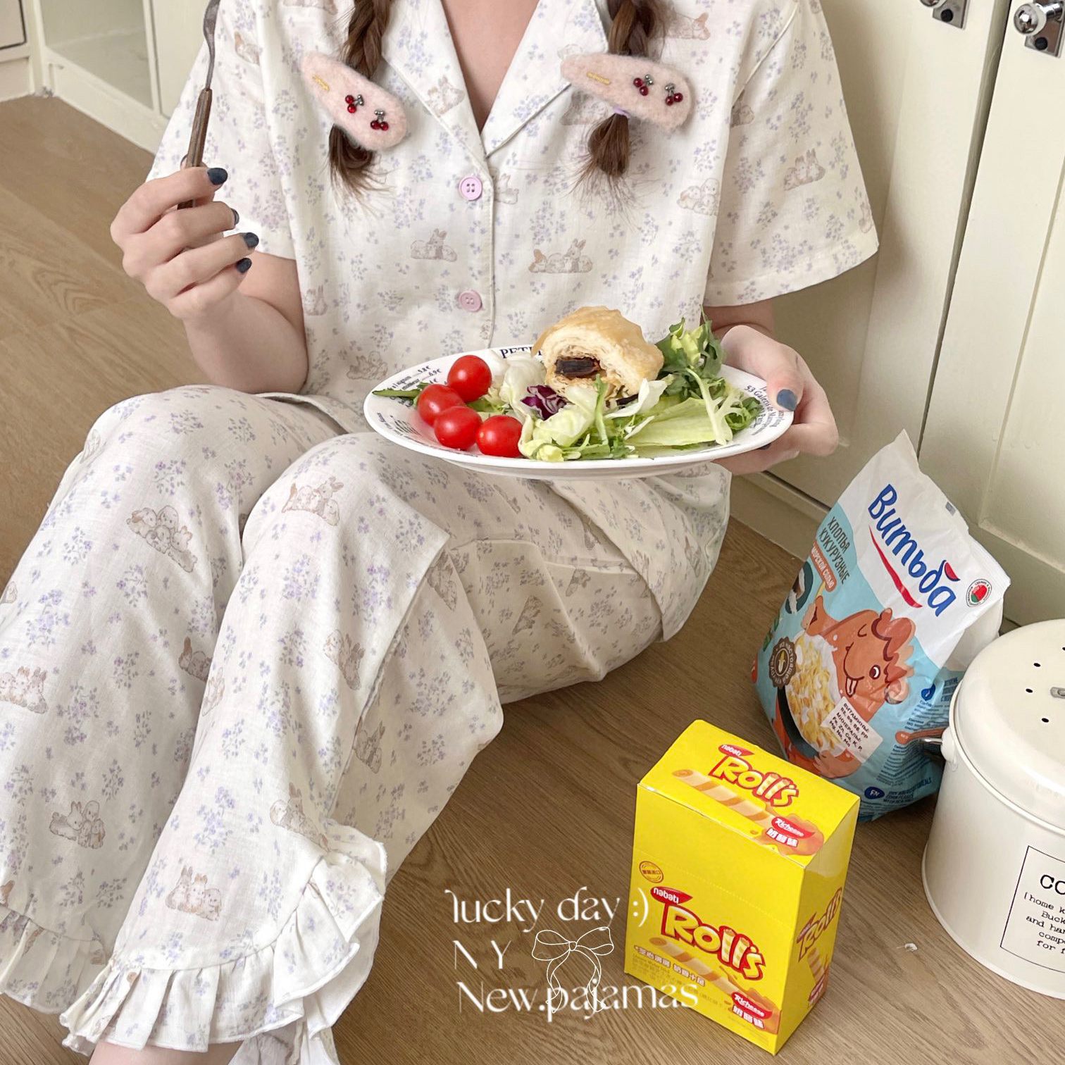 (总)纽约生活 2025新款绉布圆领开扣长袖长裤(会员-5),波比熊,黑碎花猫咪,蝴蝶结粉熊,花花狗,蓝碎花,塞纳花房