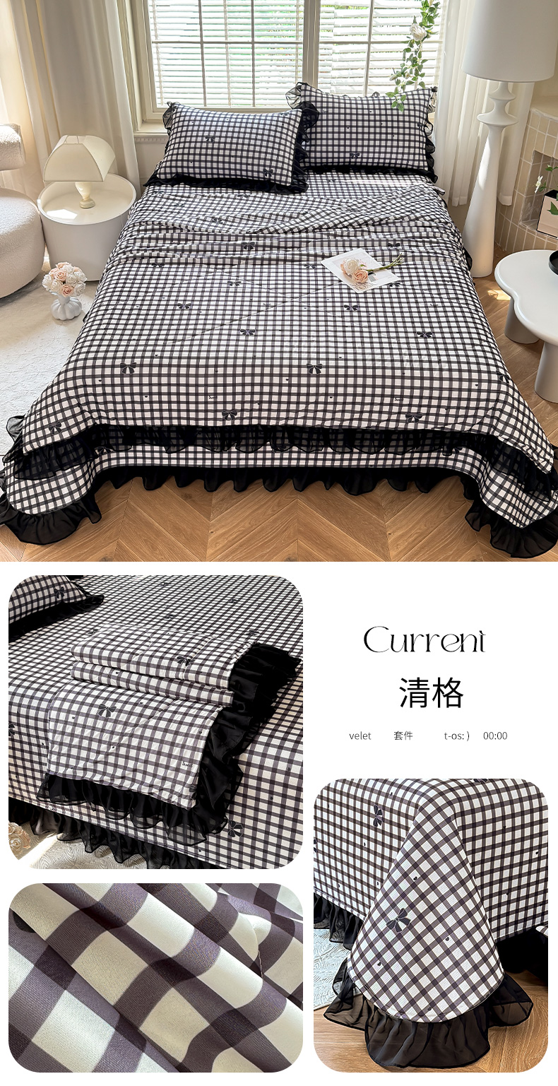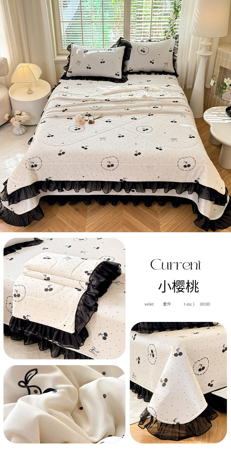 (总)大麦家纺 2025新款高克重牛奶绒花边床盖四件套,玫瑰故事,豹纹,复古樱桃,蝴蝶结紫色,玫瑰之约,美拉德猫,织梦空间