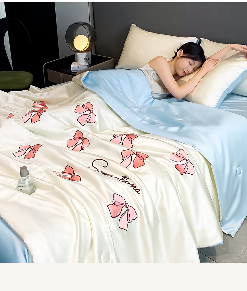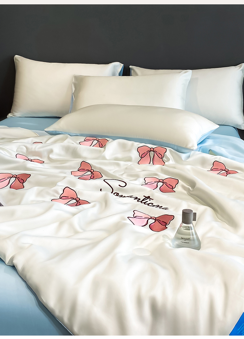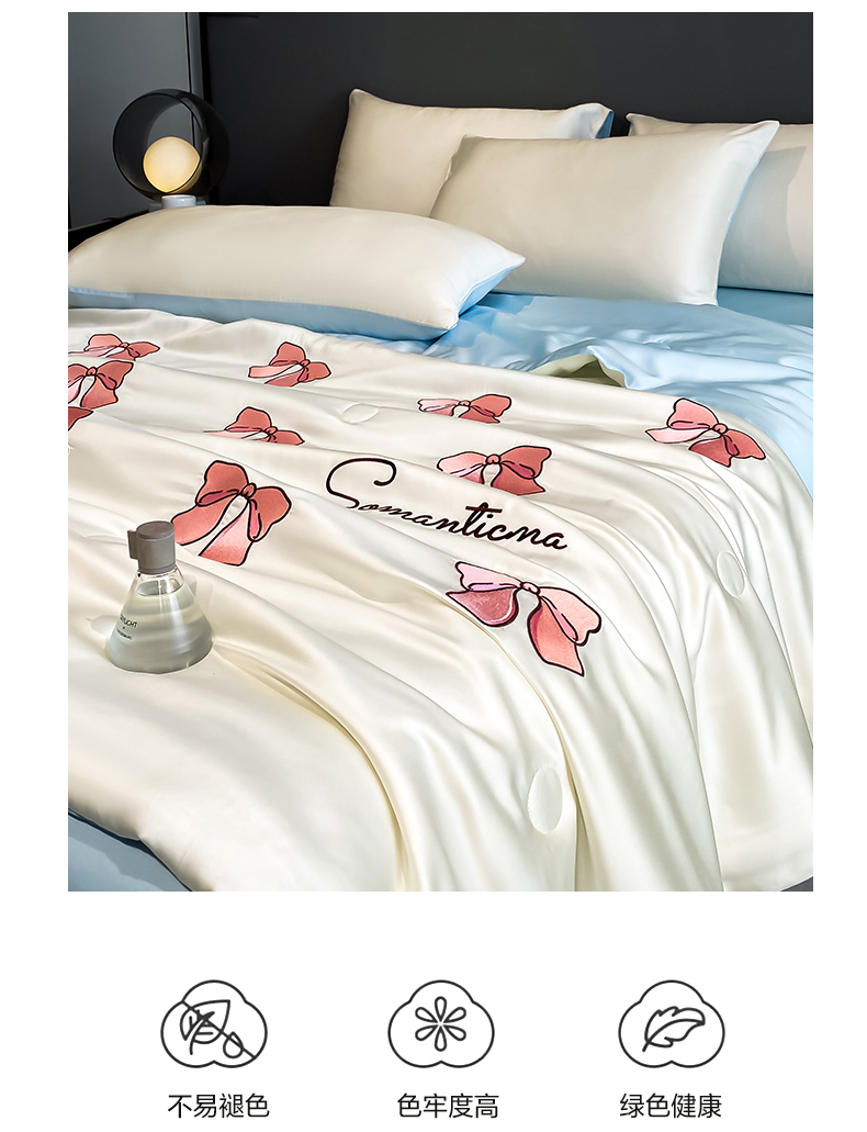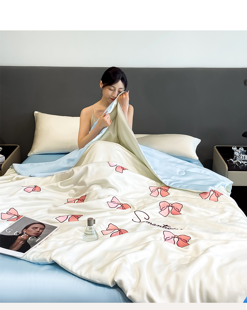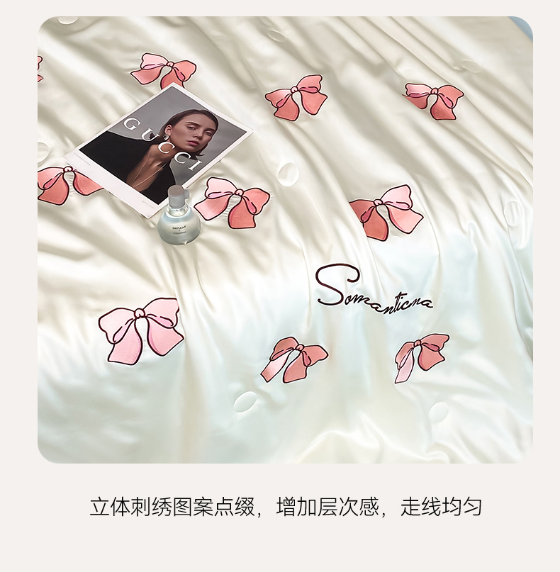 当前位置: 91家纺网 > 商品网购 > 床品套件 > 四件套 > 水洗真丝四件套 > 笙意家纺 2025新款水洗真丝夏被夏凉被空调被四件套-满绣系列 蝴蝶结-白+天蓝