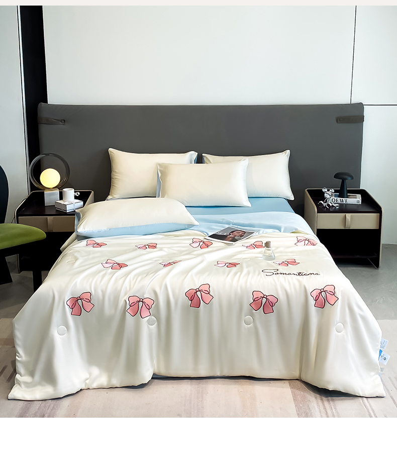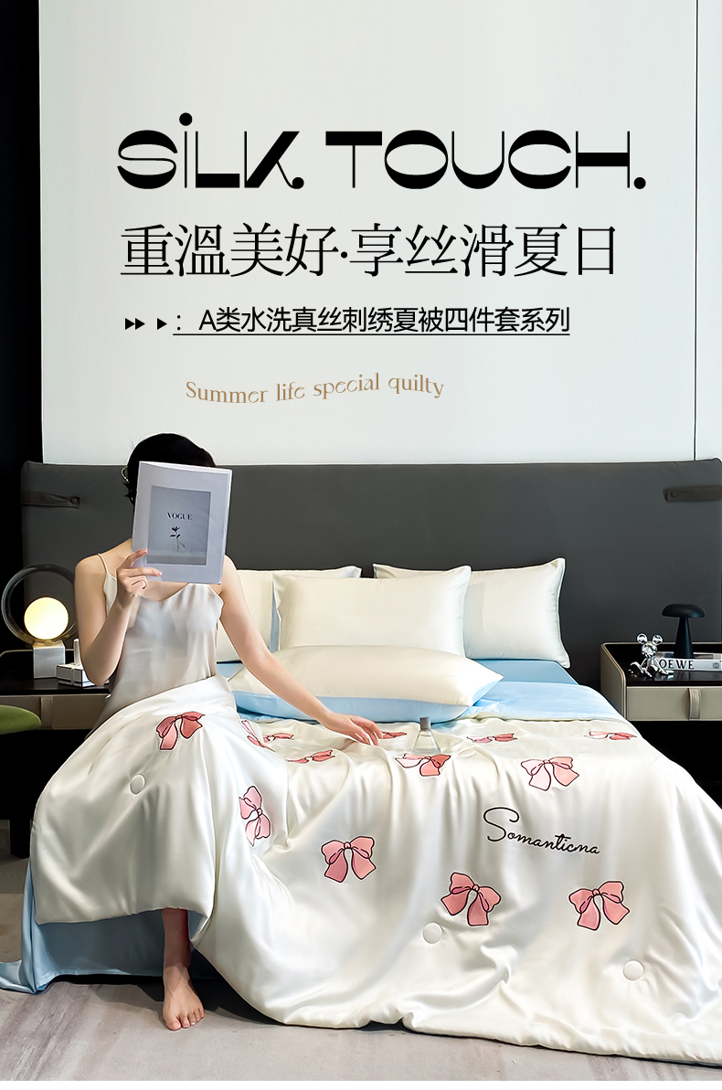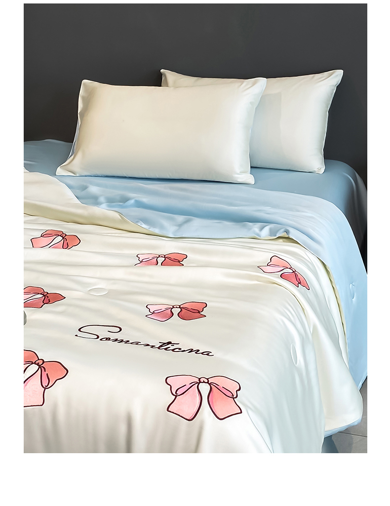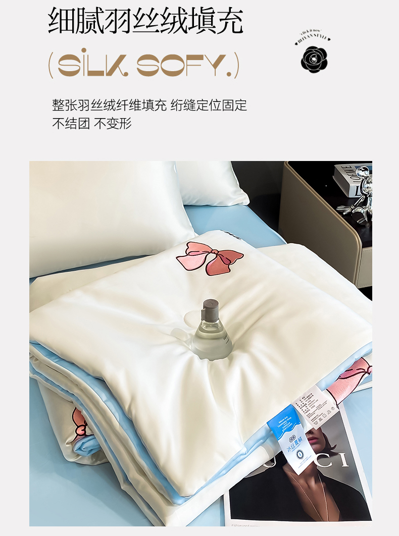 当前位置: 91家纺网 > 商品网购 > 床品套件 > 四件套 > 水洗真丝四件套 > 笙意家纺 2025新款水洗真丝夏被夏凉被空调被四件套-满绣系列 蝴蝶结-白+天蓝