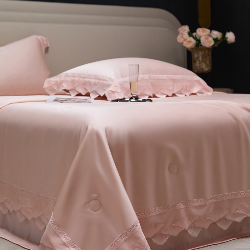 时亿家居 2025新款80s兰精天丝夏被四件套 爱丽丝 爱丽丝 芽粉