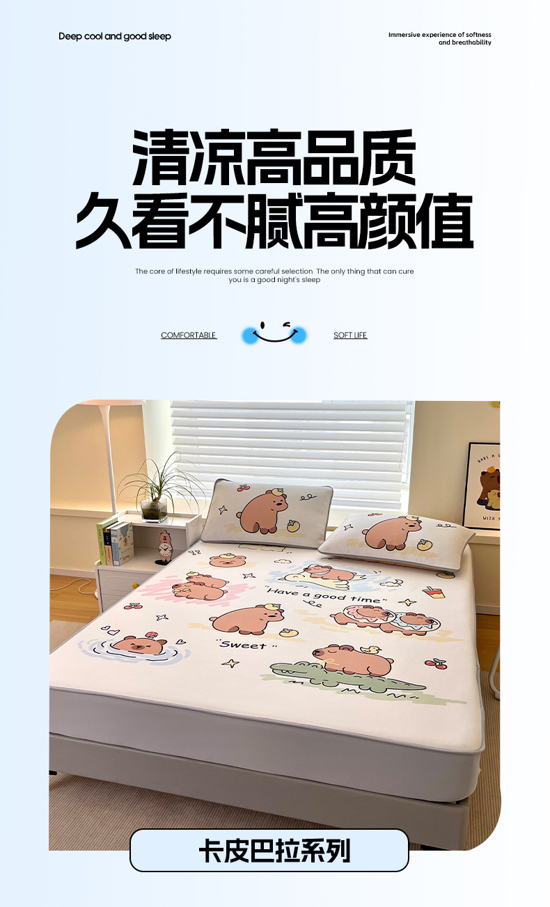 • 91家纺网 家纺一手货源 找家纺 蘭菲家纺 2025新款凉感丝卡皮巴拉凉席 豚世界
