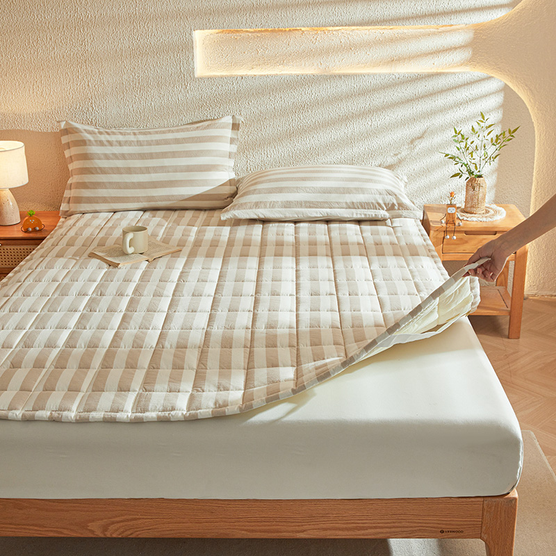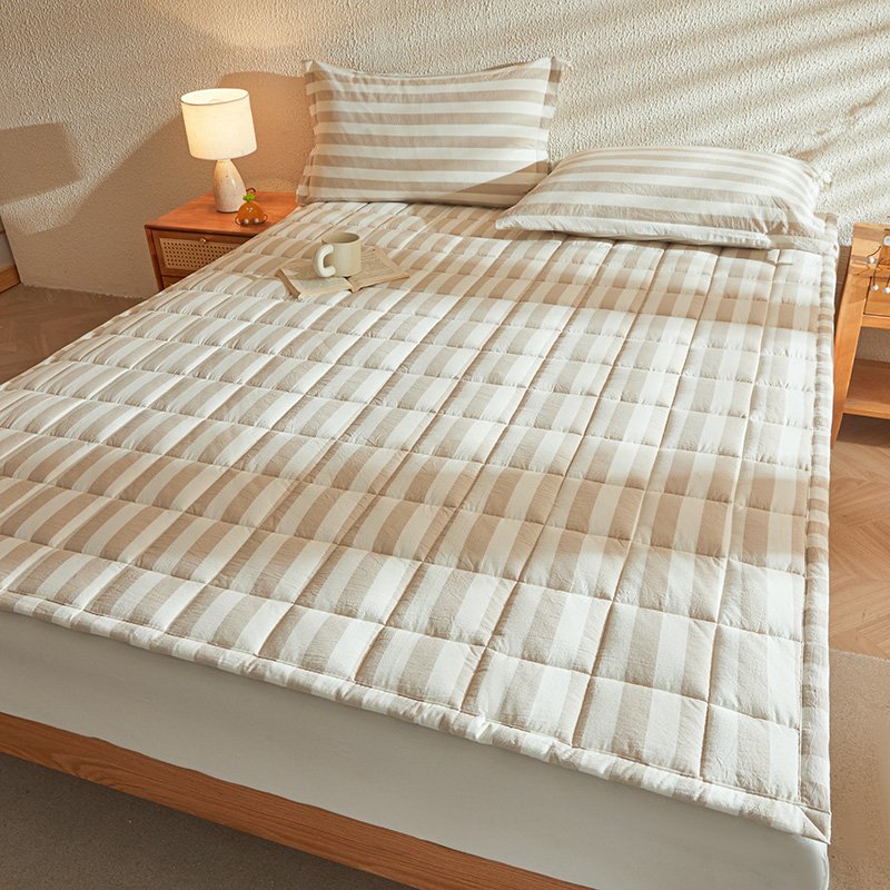 • 91家纺网 家纺一手货源 找家纺 丽诺床垫 2025新款亲肤舒适全棉纯棉色织棉花床褥床垫-少女粉 米色-宽条